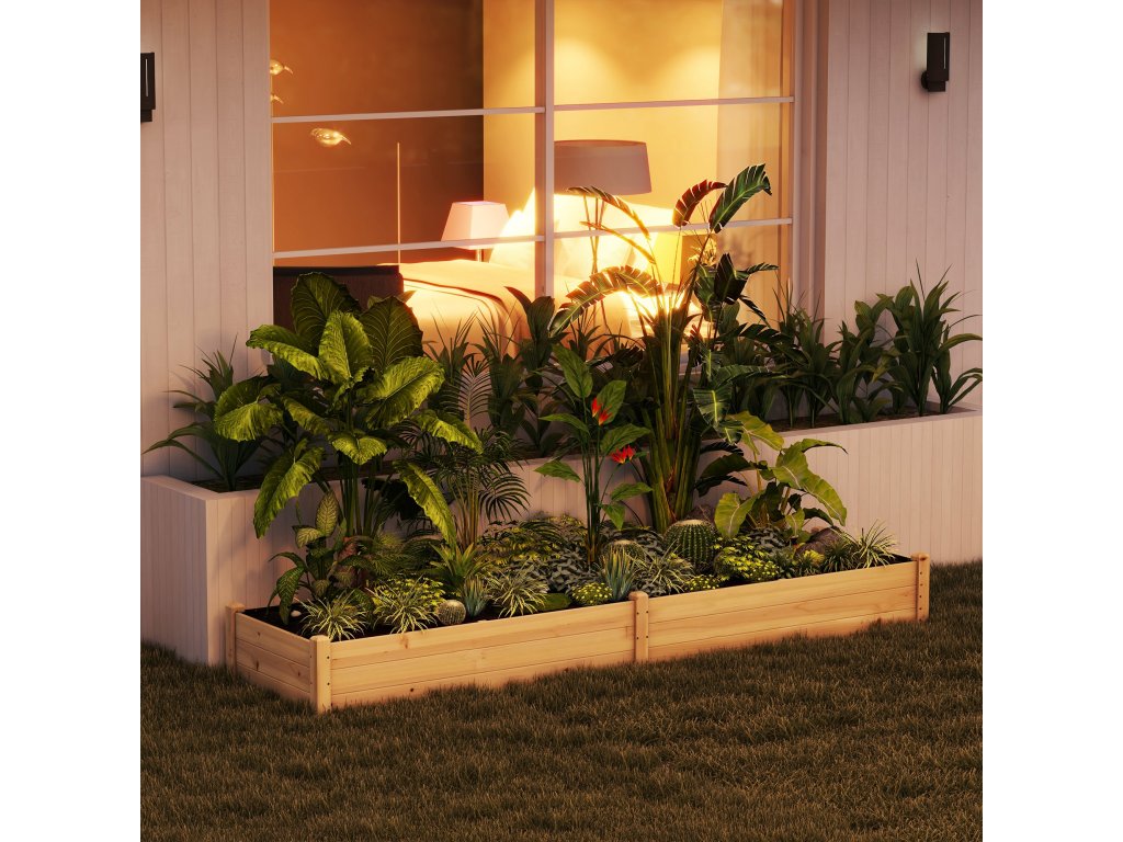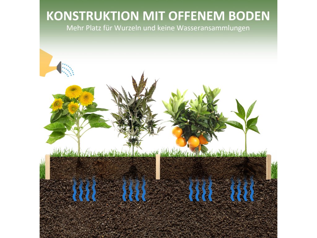 Tento vyvýšený záhon od společnosti Outsunny je jednoduchý, ale praktický. Je vyrobena z pevného a odolného masivního dřeva a má vnitřní fleecovou podšívku. Vodoodpudivá vnitřní podšívka je prodyšná, udržuje půdu uvnitř a zajišťuje zdravou vodní rovnováhu pro rostliny. Vyvýšený záhon chrání rostliny před škůdci, mrazem a dalšími povětrnostními vlivy. Tento vyvýšený záhon je také dokonalou dekorací vaší zahrady.