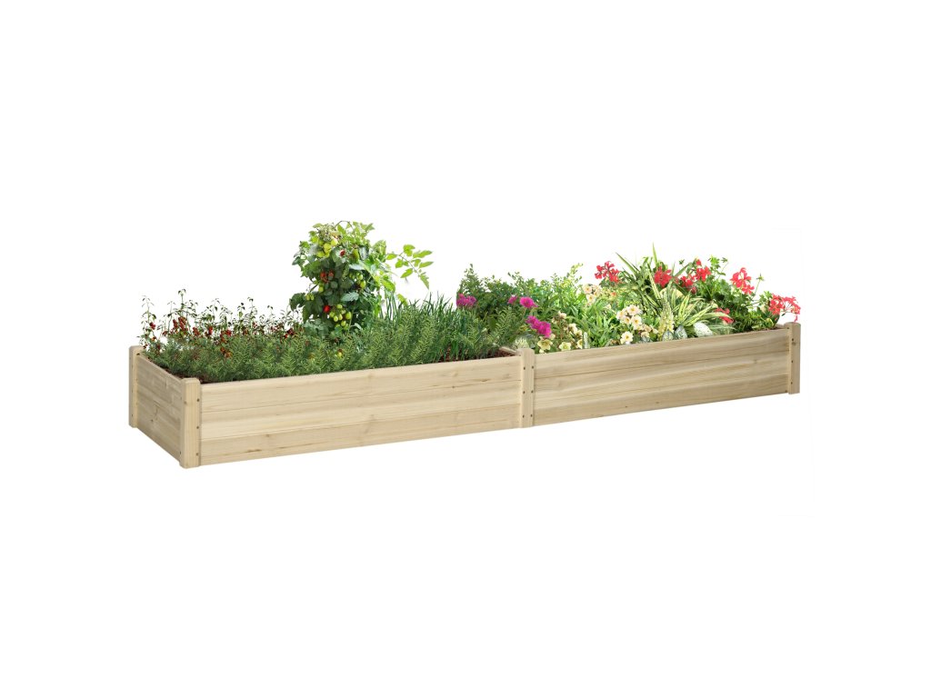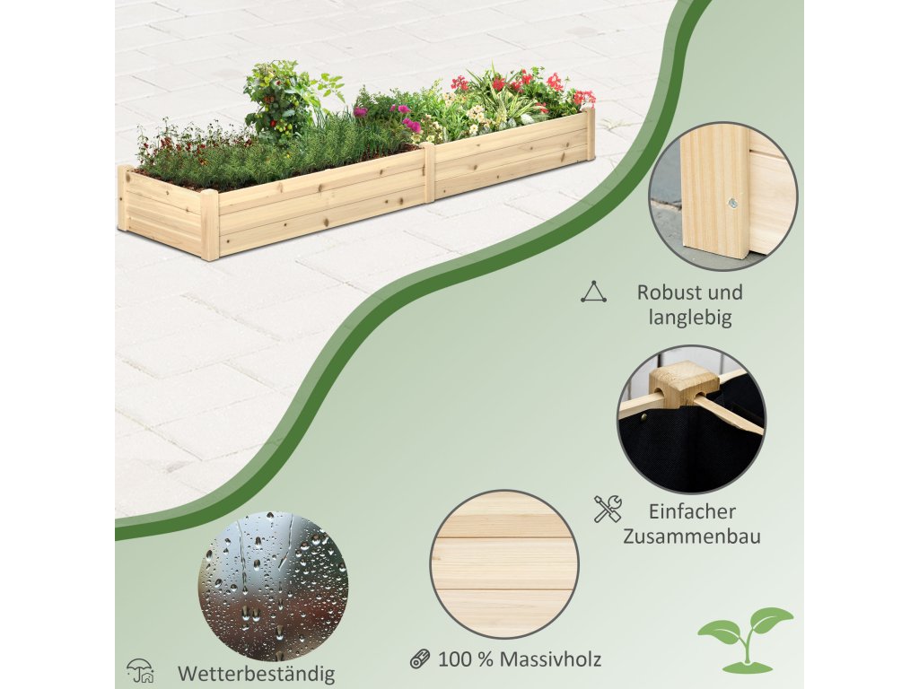 Vyvýšený záhon Outsunny, 2 plochy pro výsadbu, vnitřní obložení z rouna, odolný proti povětrnostním vlivům, masivní dřevo, 244 cm x 61,5 cm x 27 cm