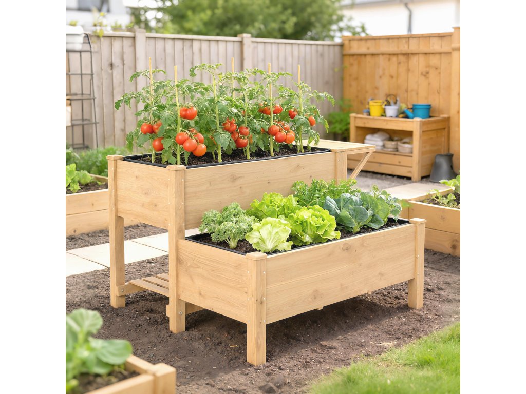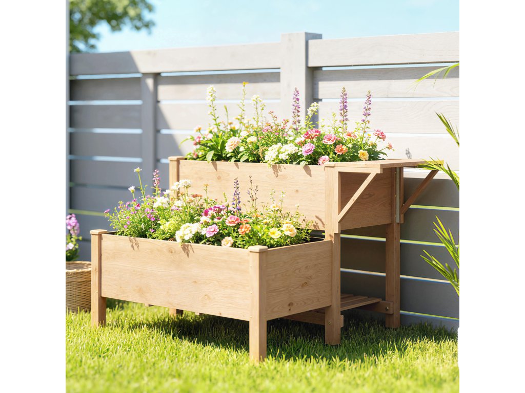 Vysokoúrovňový design výsadby: Dvouúrovňový design vyvýšeného záhonu odděluje rostliny s různými potřebami. S objemem 95,3 l je ideální pro květiny, zeleninu, bylinky a dekorativní vzhled vrstevnaté zahrady.