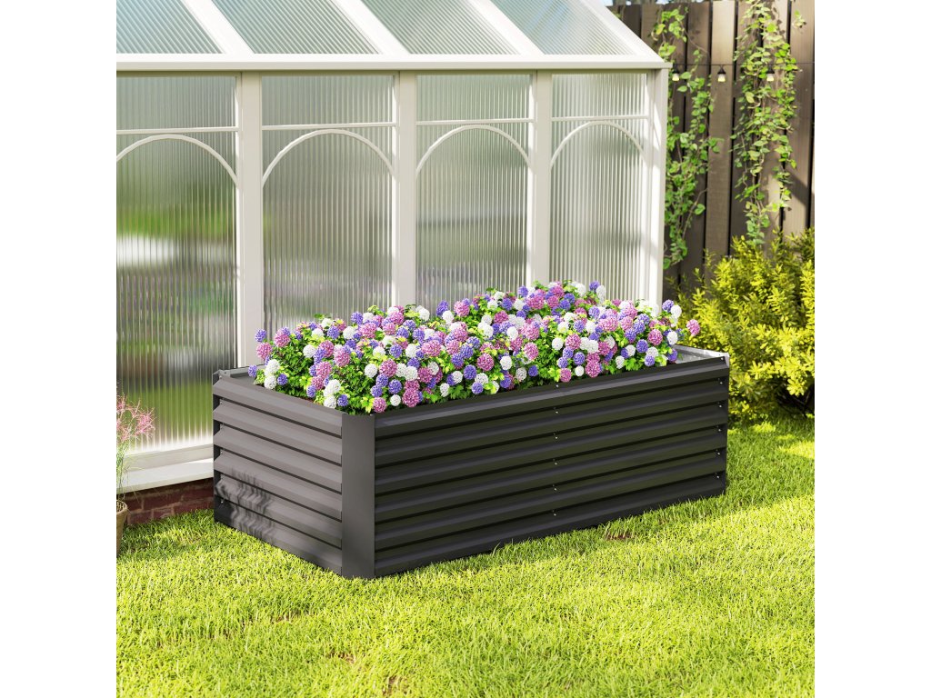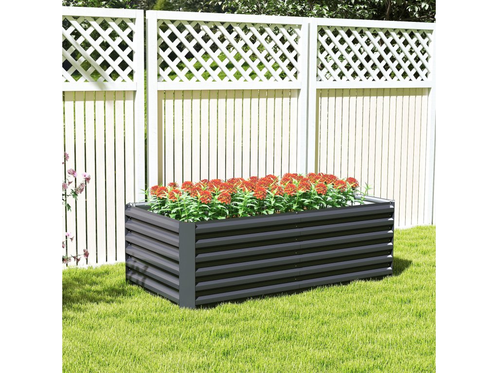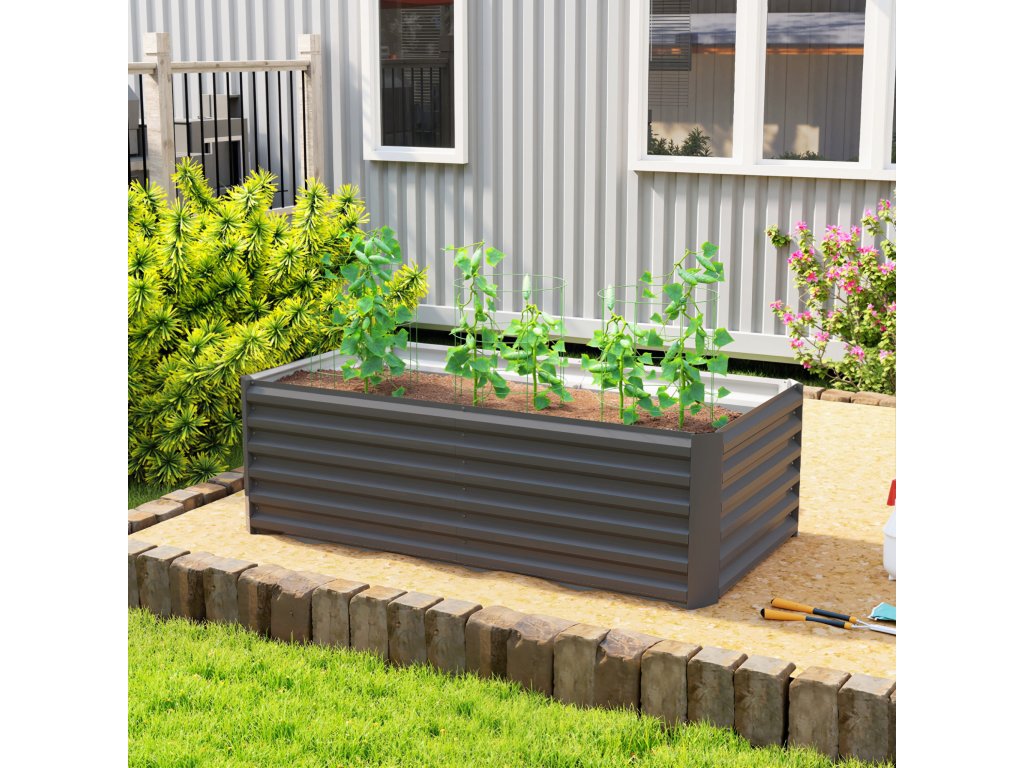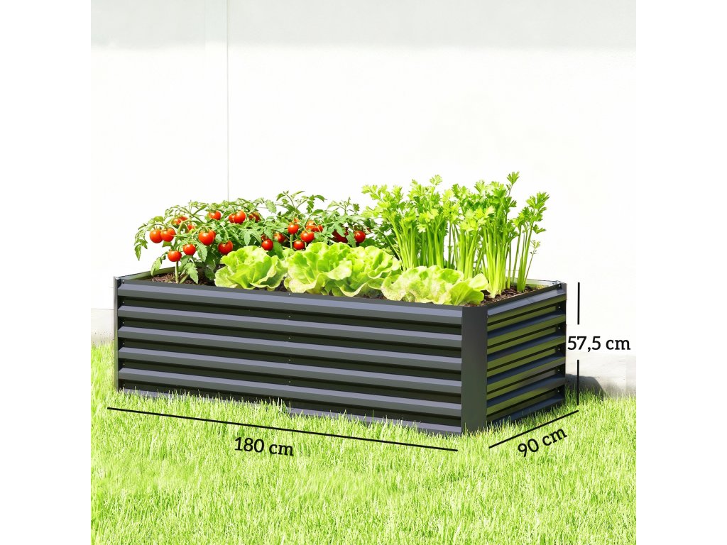 Vyvýšený záhon Outsunny, kovový, 180 x 90 x 57,5 cm hluboký, záhon s otevřeným dnem a podpůrnou tyčí, tmavě šedý