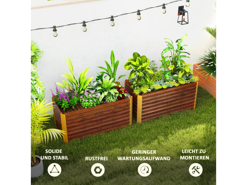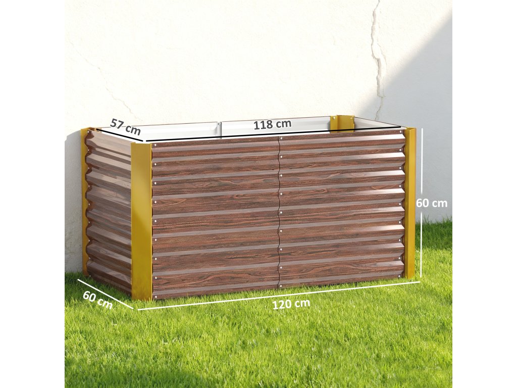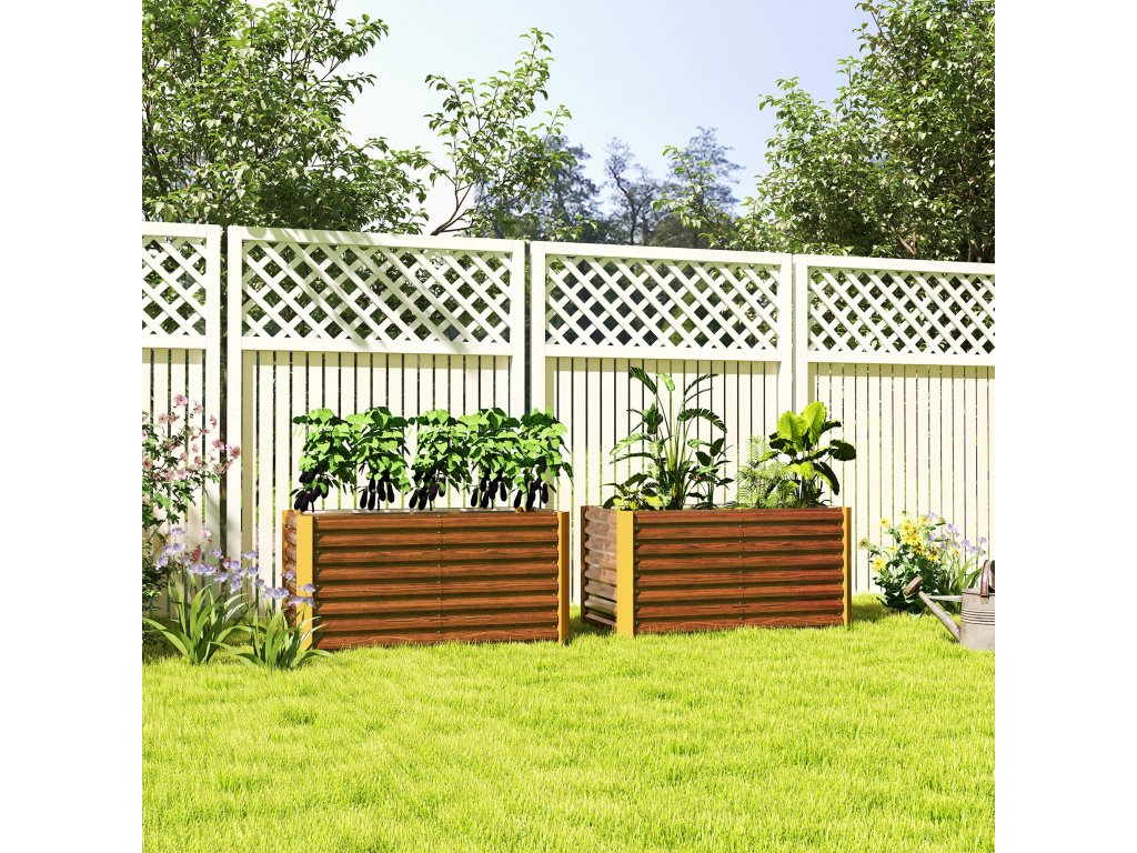 Vyvýšený záhon Outsunny, sada 2 kusů, květináč, extra hluboký, kovový, 120 x 60 x 60 cm, hnědý