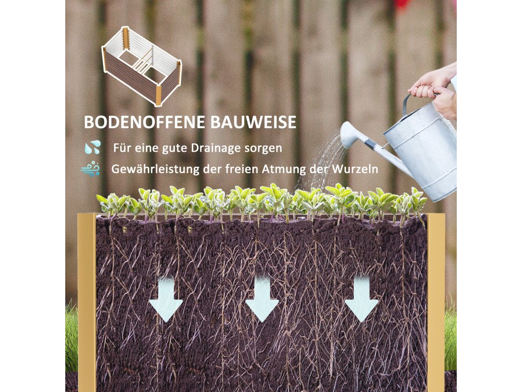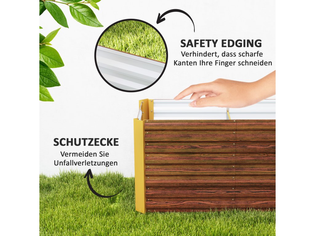 Odolná konstrukce: Tyto vyvýšené záhony jsou vyrobeny z práškově lakované pozinkované oceli s vnitřními podpěrnými konzolami a nabízejí robustní a proti korozi odolné řešení pro dlouhodobé používání ve vaší zahradě.