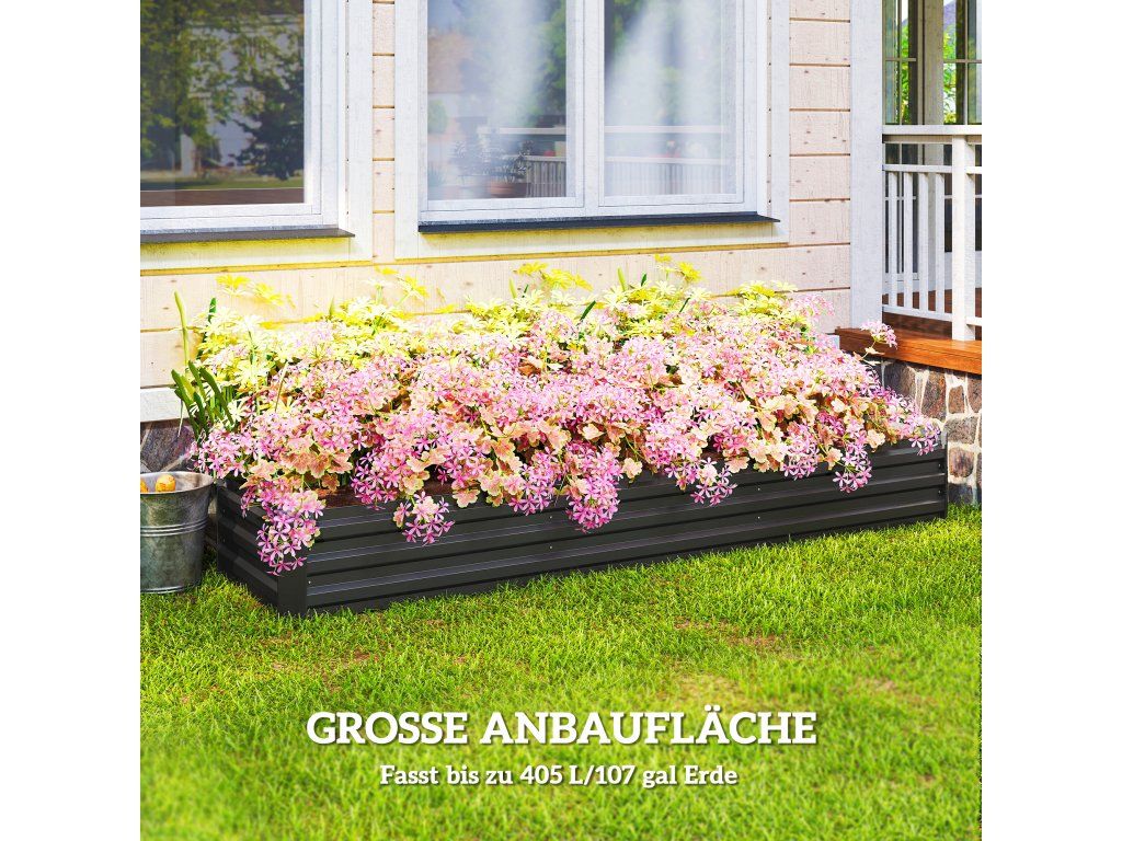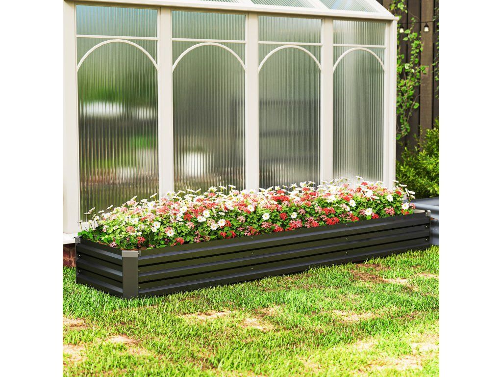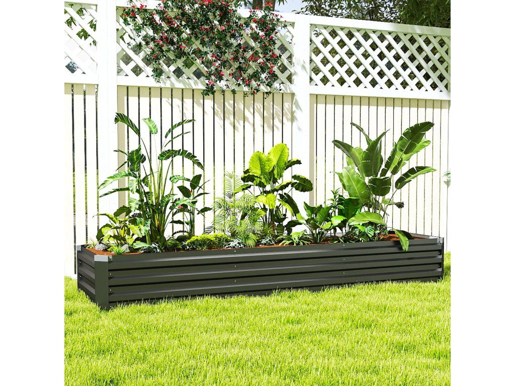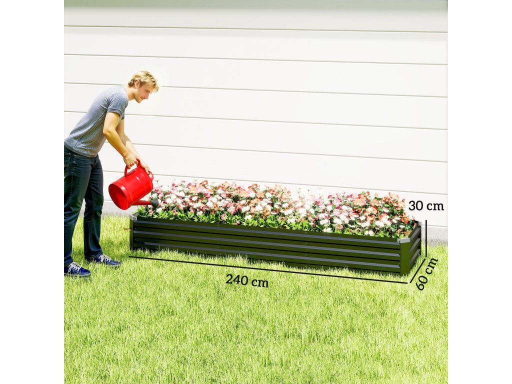 Vyvýšený záhon Outsunny, zahradní záhon, bylinkový záhon, odolný proti povětrnostním vlivům, otevřená základna, 240 x 60 x 30 cm, tmavě šedý