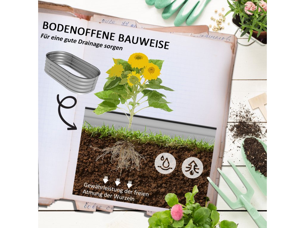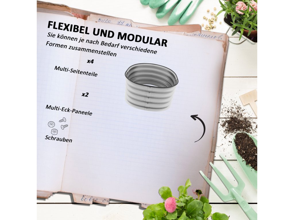 Vyvýšený záhon Outsunny Modulární vyvýšený záhon, odolný proti povětrnostním vlivům, otevřená základna, 105 x 62 x 30 cm, stříbrný