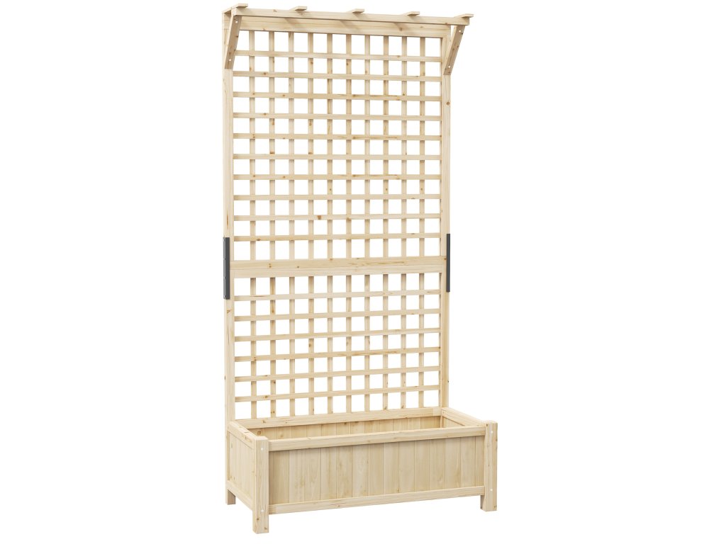 Vyvýšený záhon Outsunny s mřížoví a střechou, truhlík, záhon, odolný proti povětrnostním vlivům, dřevo, 90 x 45 x 183 cm, přírodní dřevo