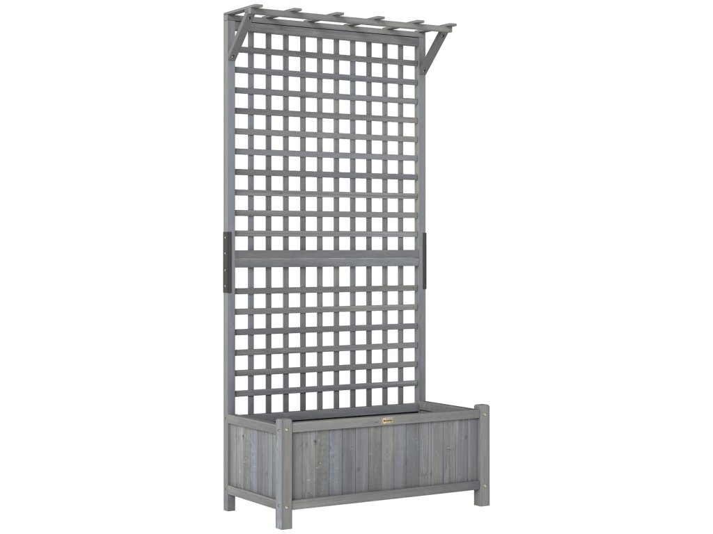 Vyvýšený záhon Outsunny s mřížoví a střechou, truhlík, záhon, odolný proti povětrnostním vlivům, dřevo, 90 x 45 x 183 cm, tmavě šedý
