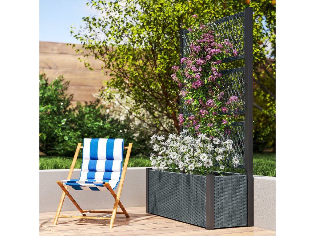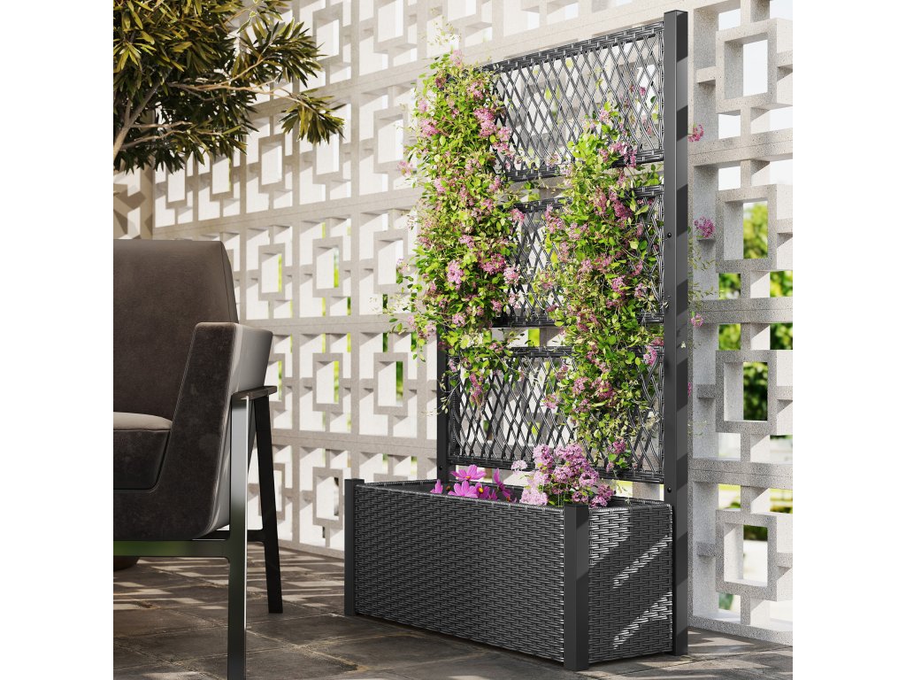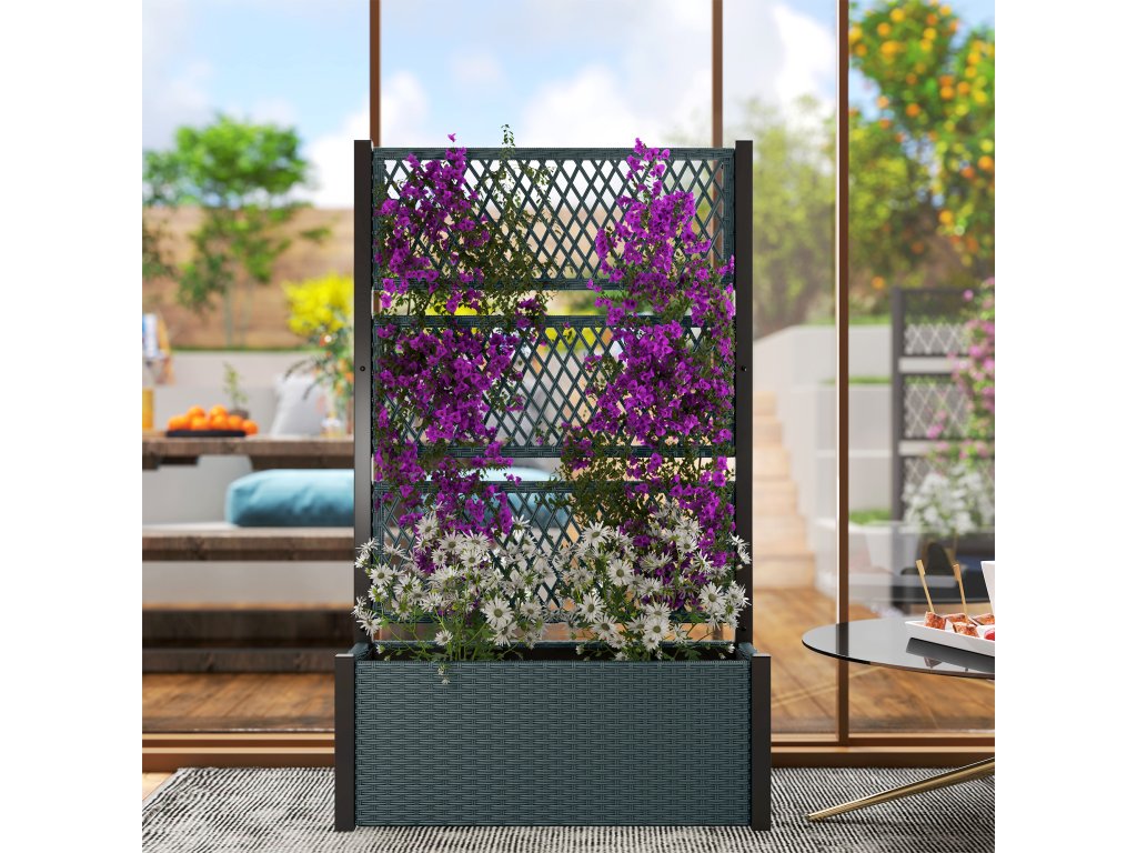Provedení 2 v 1: Spodní vyvýšený ratanový záhon a třídílná zadní deska treláže. Poskytuje oporu pro popínavé rostliny, zatímco prostorný spodní box nabízí dostatek prostoru pro různé rostliny, květiny a další.