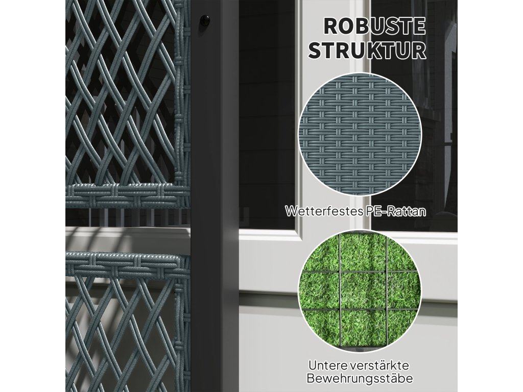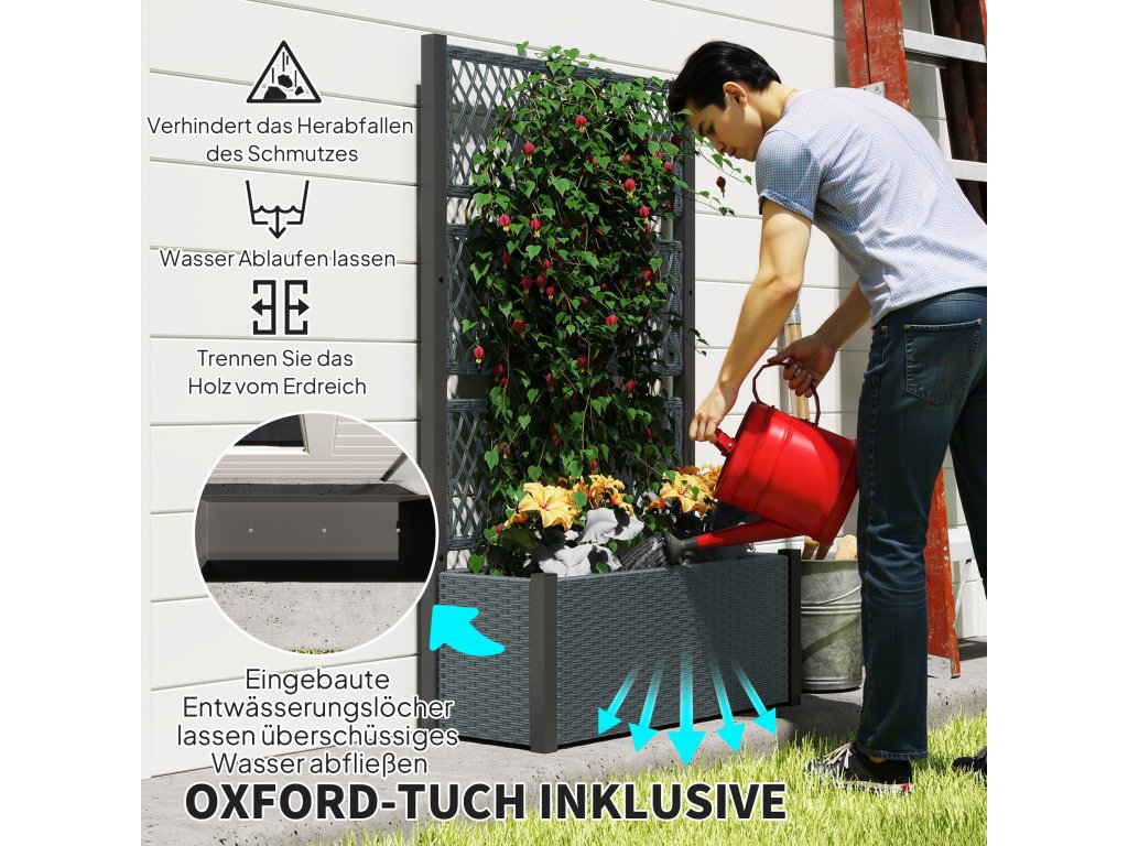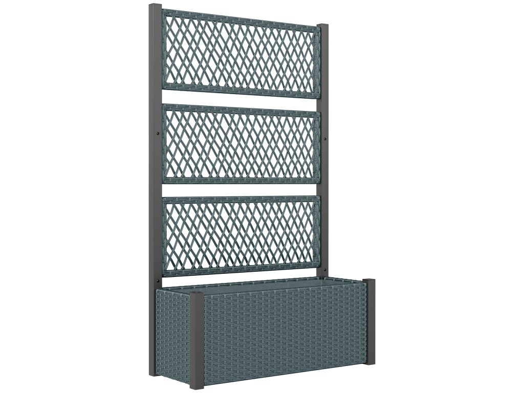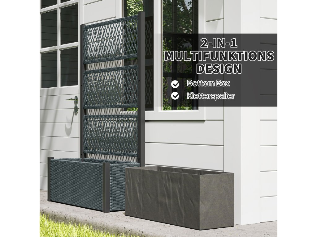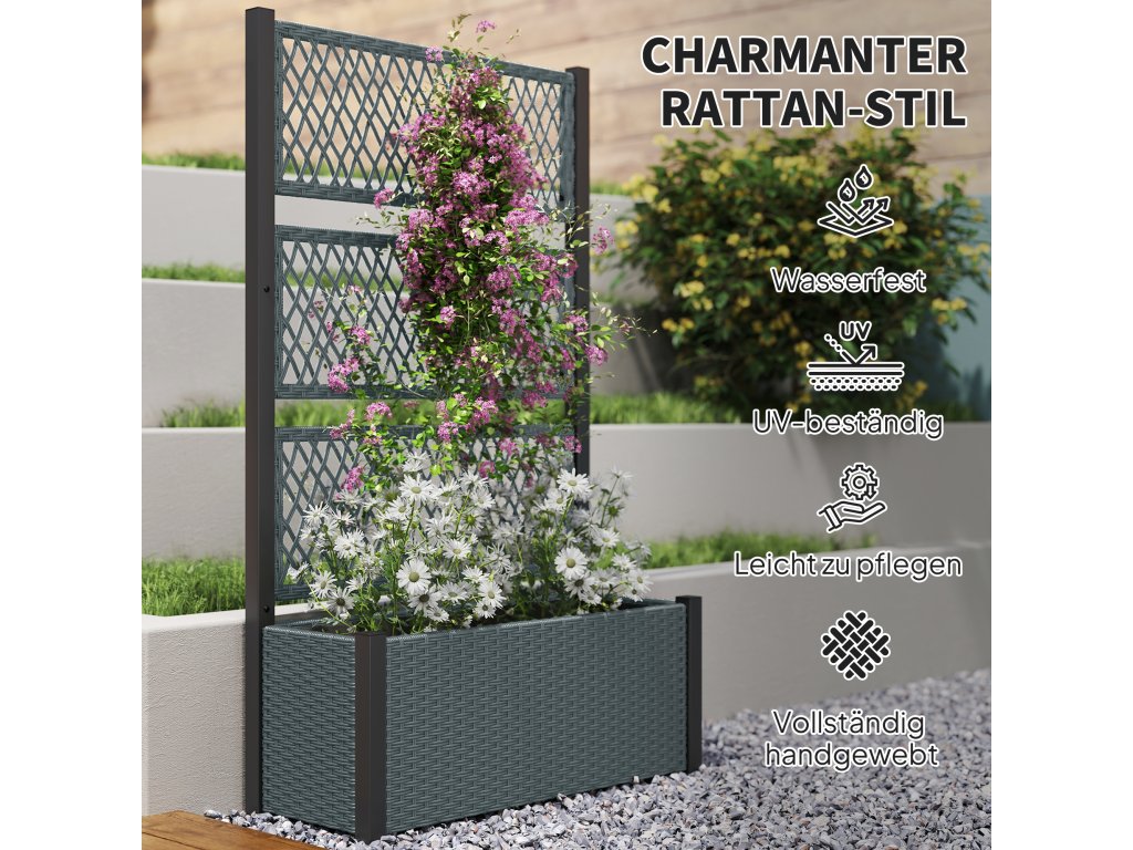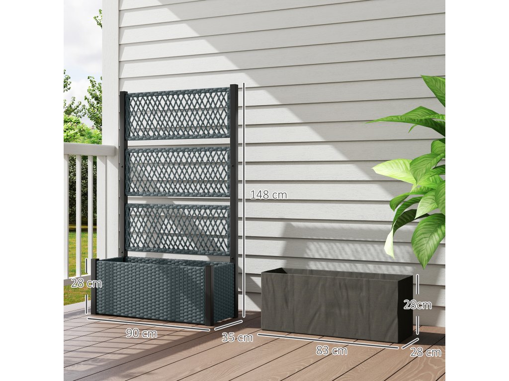 Vyvýšený záhon Outsunny s mřížoví v ratanovém vzhledu, květináč, květináč s pomůckou na šplhání, 90 x 35 x 148 cm, tmavě šedý