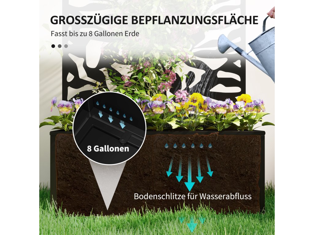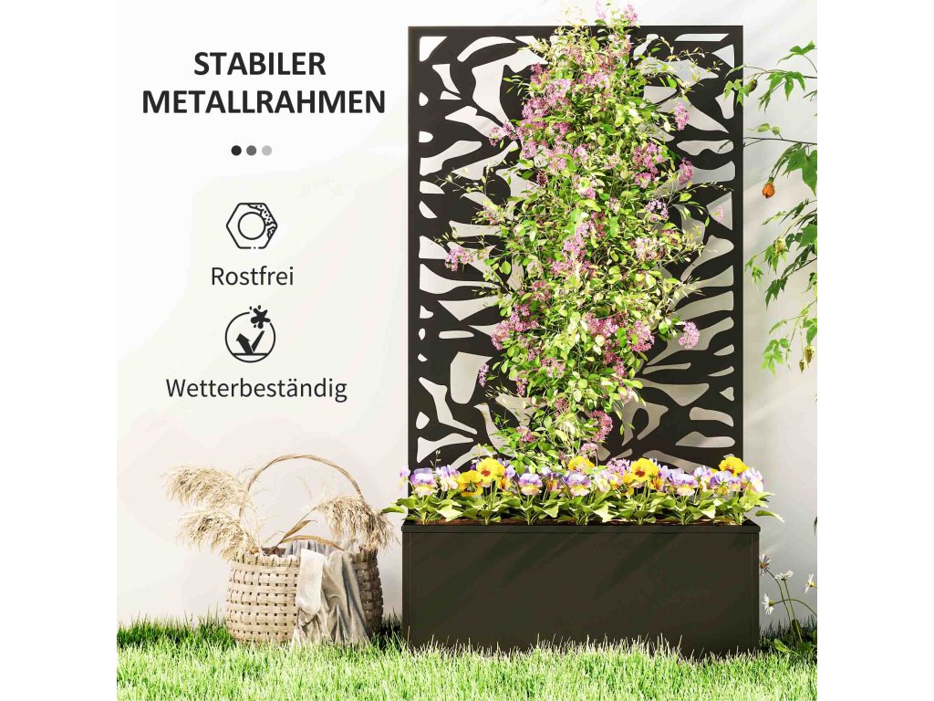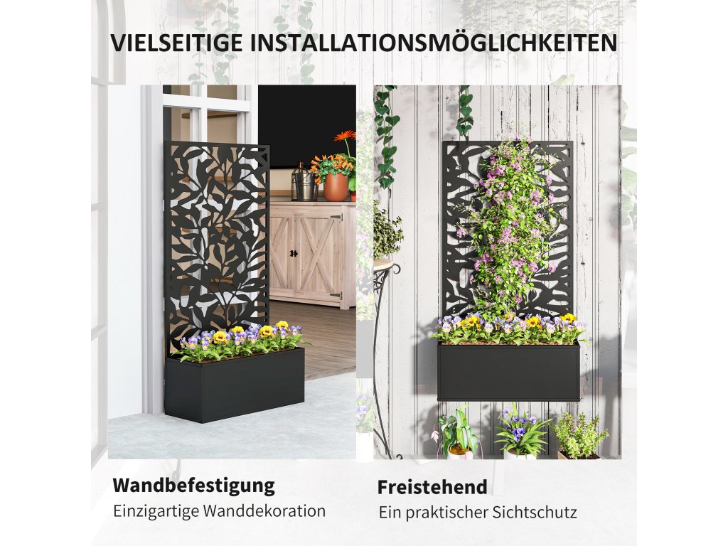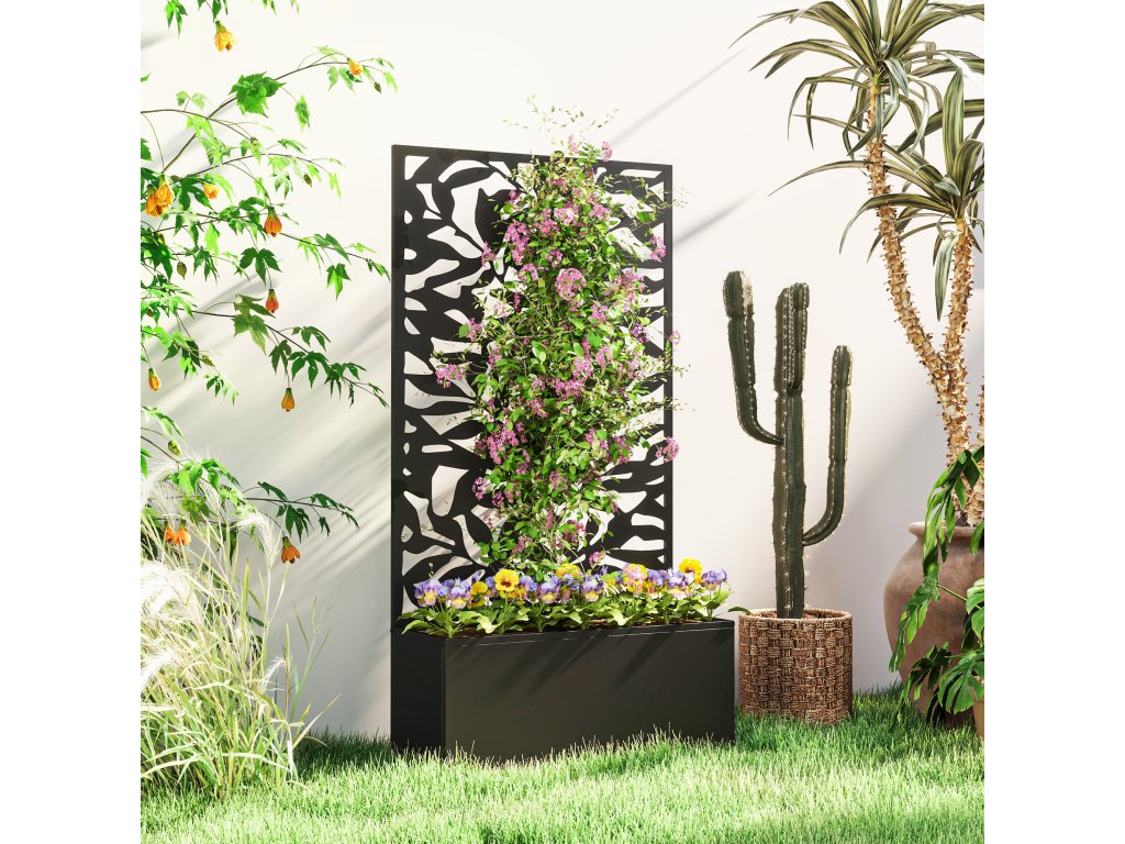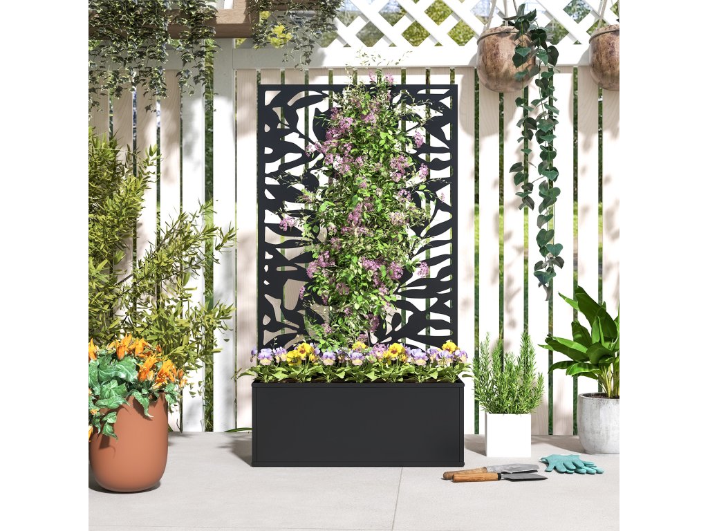 - Všestranná zástěna na ochranu soukromí: Tento vyvýšený zahradní záhon představuje úžasný prvek zástěny na ochranu soukromí s detailními motivy pevných listů, který nejenže zajistí větší soukromí na vaší zahradě, ale také funguje jako účinná mříž pro popínavé rostliny.