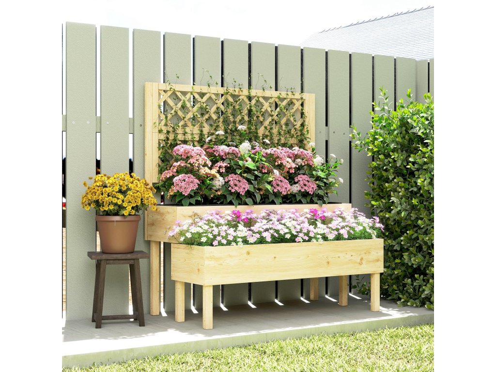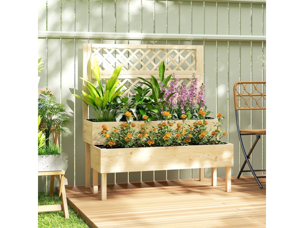 Vyvýšený záhon Outsunny s treláží, 2patrový květináč se 2 truhlíky, dřevo, 108 x 62 x 120 cm