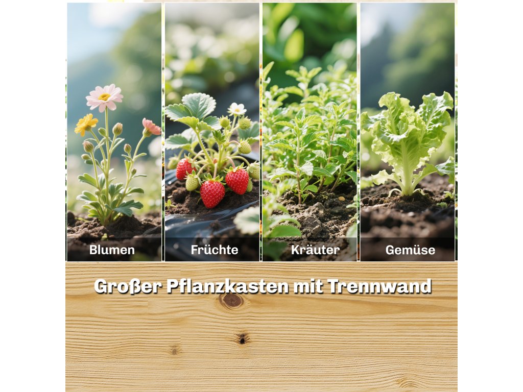 ✔ Dva velké truhlíky oddělují oblasti pro různé rostliny