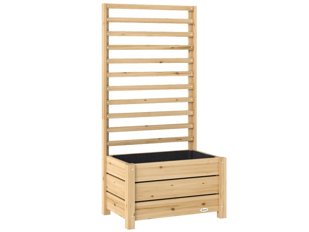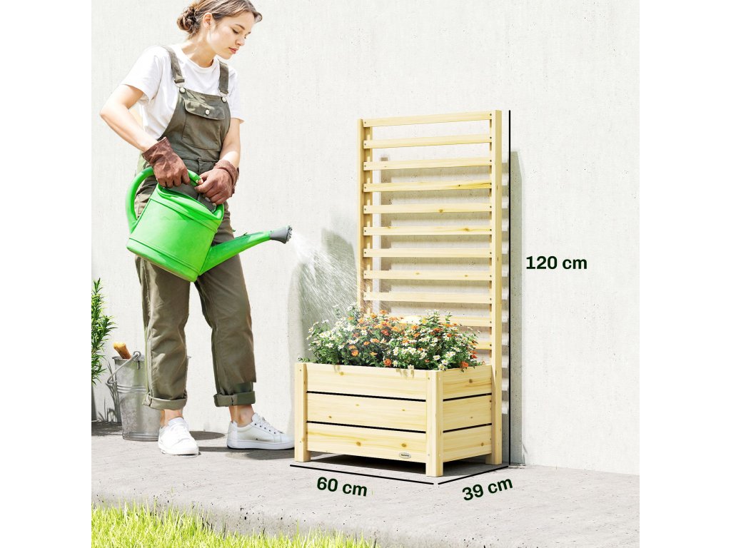 Vyvýšený záhon Outsunny s treláží, dřevěný květináč se špalírem, drenážní otvor, netkaná textilie, 60 x 39 x 120 cm, přírodní dřevo