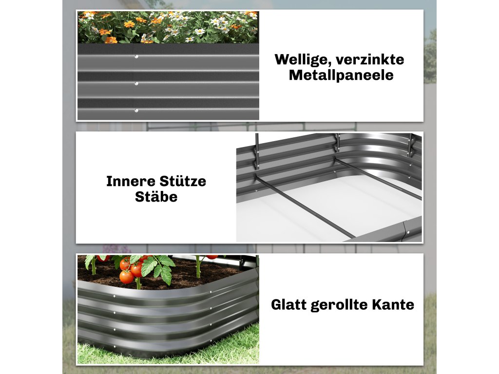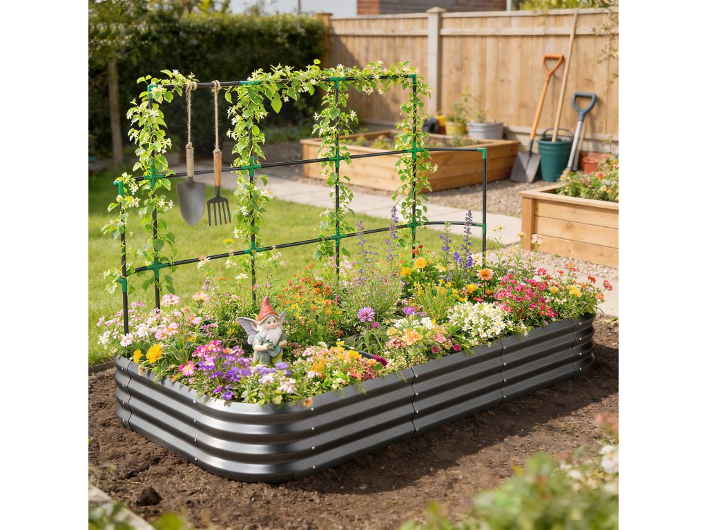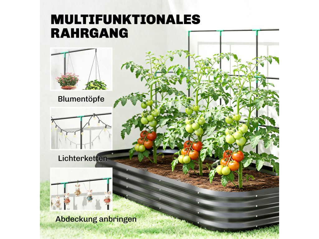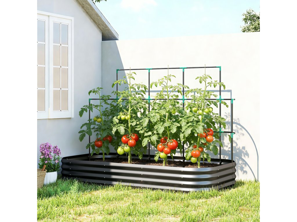Dopřejte své zahradě prostor a oporu s vyvýšeným záhonem s treláží Outsunny. Tato treláže šetří místo, umožňuje růst popínavých rostlin a poskytuje prostor pro dekorace. Pozinkovaný kov odolává povětrnostním vlivům, modulární panely se přizpůsobí vašim potřebám a otevřená konstrukce základny zajišťuje odvodnění a zabraňuje hnilobě kořenů – pro zdravý růst rostlin.