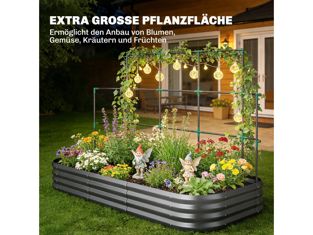 Rozšířená výsadbová plocha: Tento květináč s treláží nabízí velkorysou výsadbovou plochu 716L, která umožňuje pěstování zeleniny a bylinky prospívají a zároveň udržují vaši zahradu uklizenou.