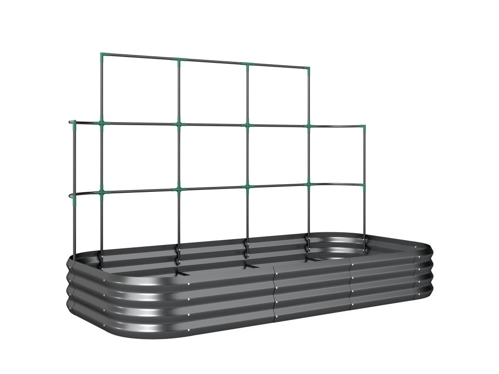 Vyvýšený záhon Outsunny s treláží, kovový květináč s ochranným okrajem, rukavice, 220 x 110 x 150 cm, tmavě šedý