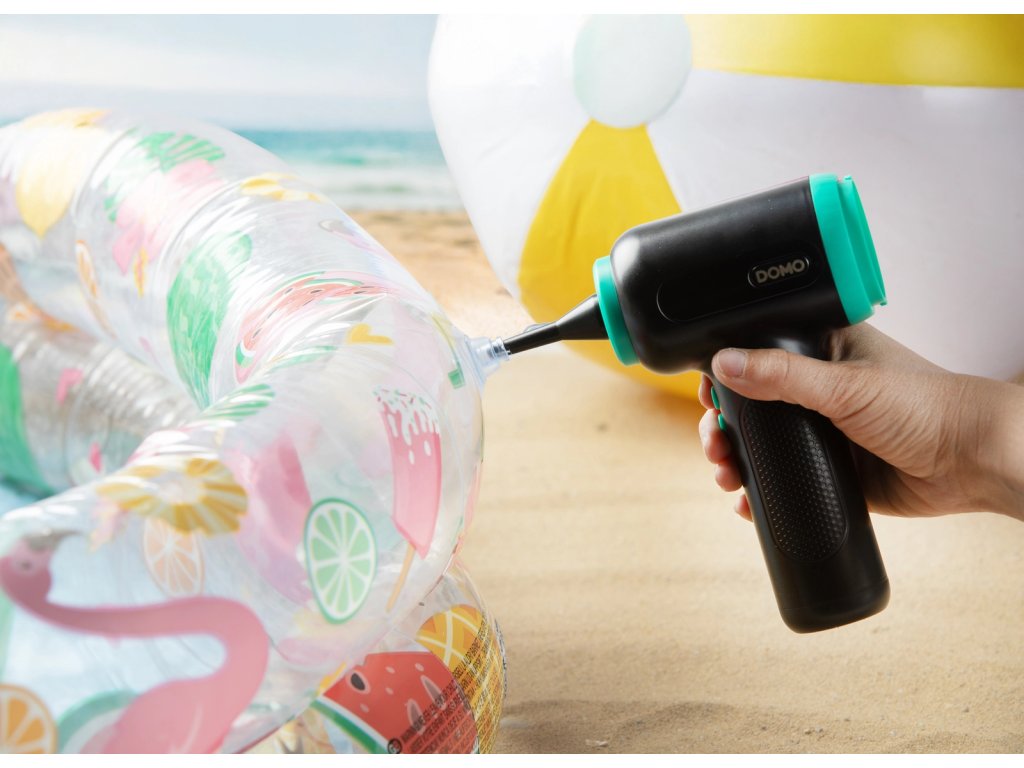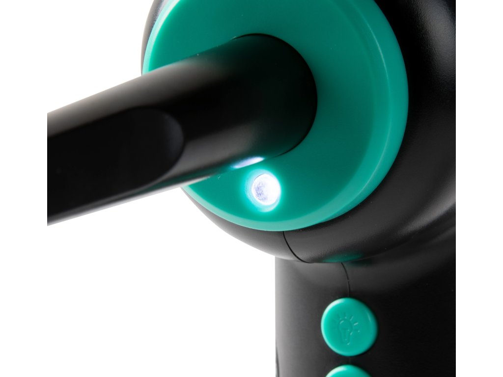Vestavěné LED světlo zajišťuje lepší viditelnost při práci. Přístroj lze využít také k nafukování malých i velkých nafukovacích předmětů.