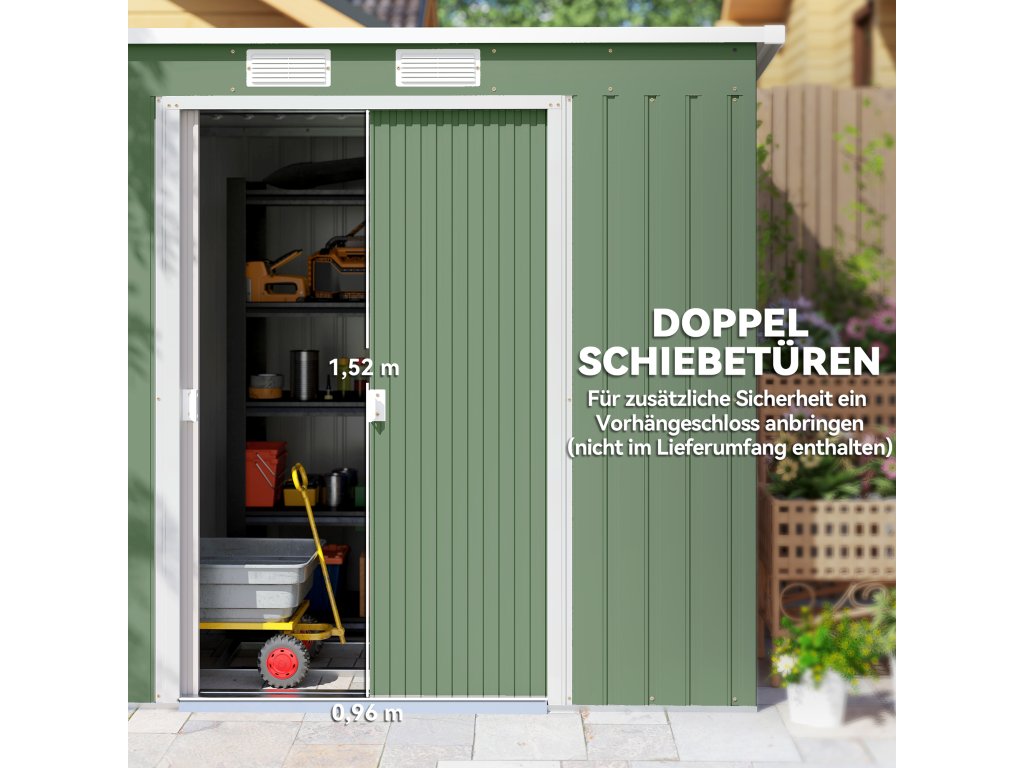 ✔ Posuvné dveře zahradního domku pro snadný přístup. Uzamykatelné, zámek není součástí balení