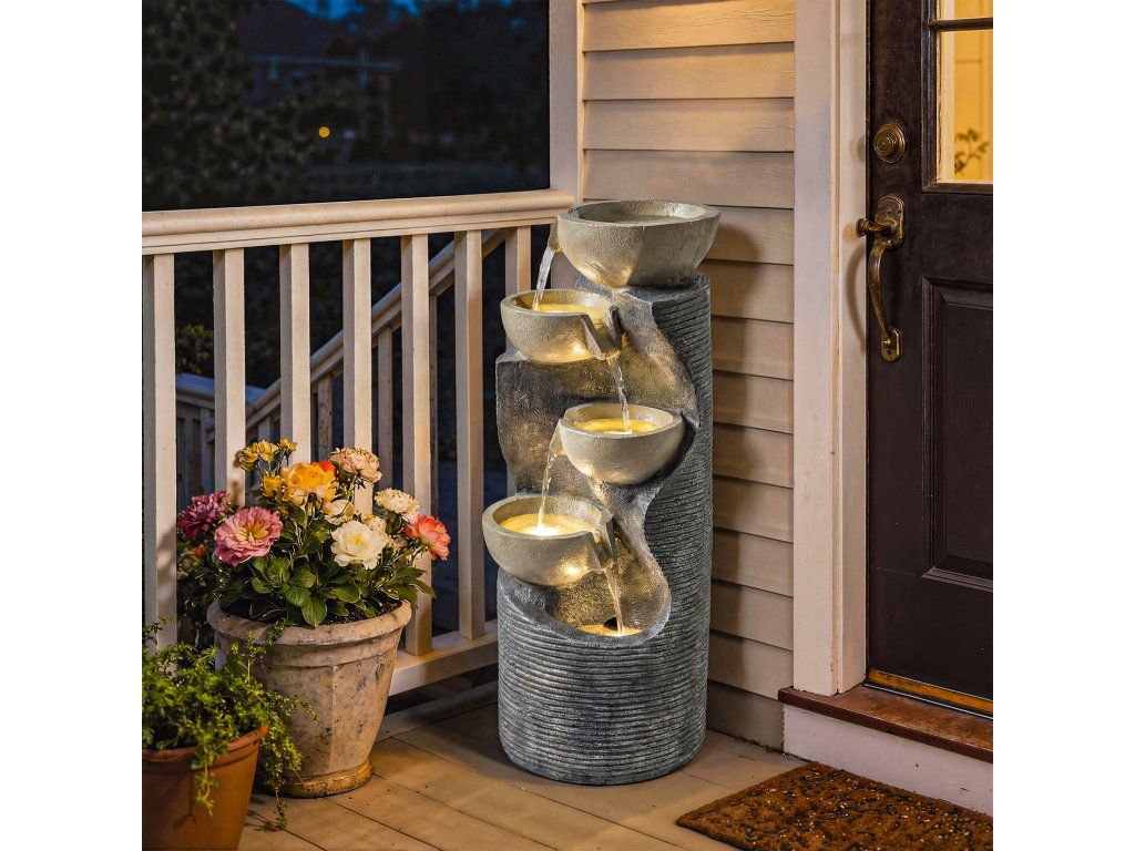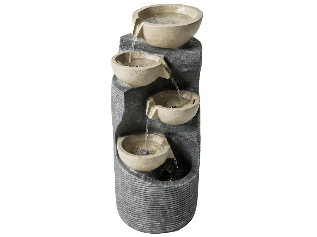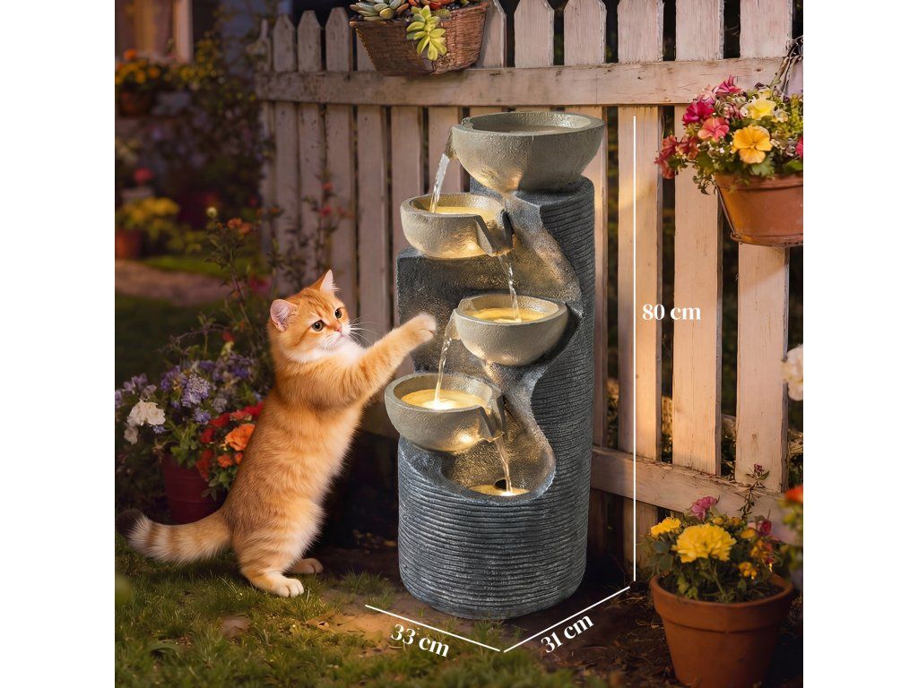 Zahradní fontána Outsunny s 5 úrovněmi a LED osvětlením, čerpadlo, vzhled kamene, nastavitelná, 33 x 31 x 80 cm