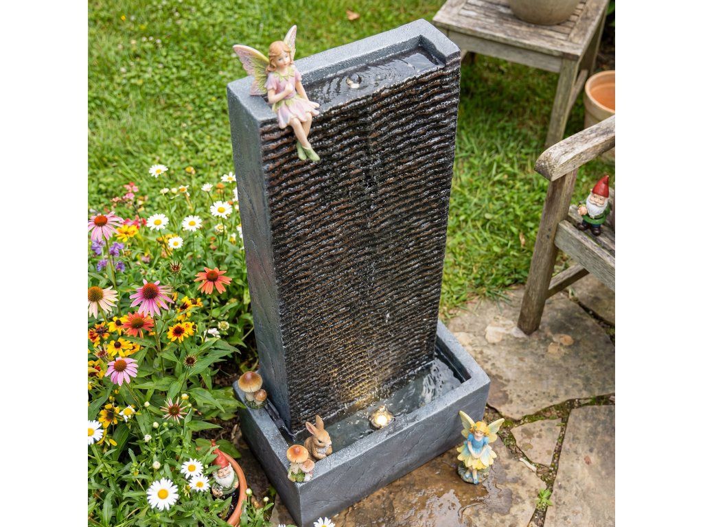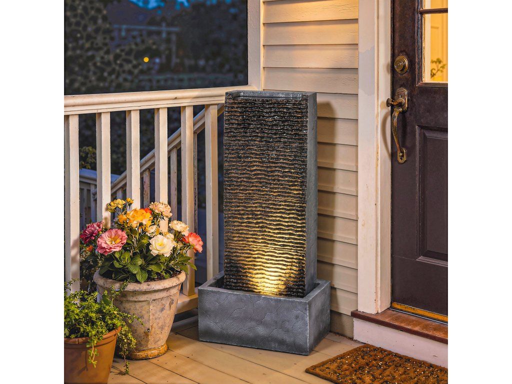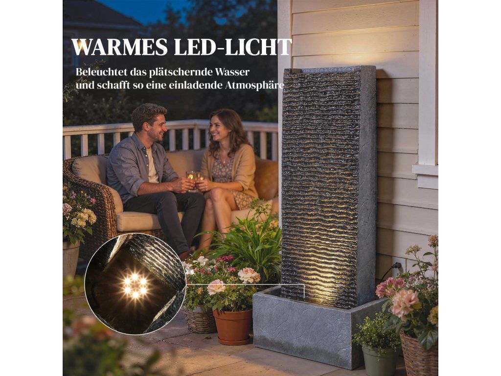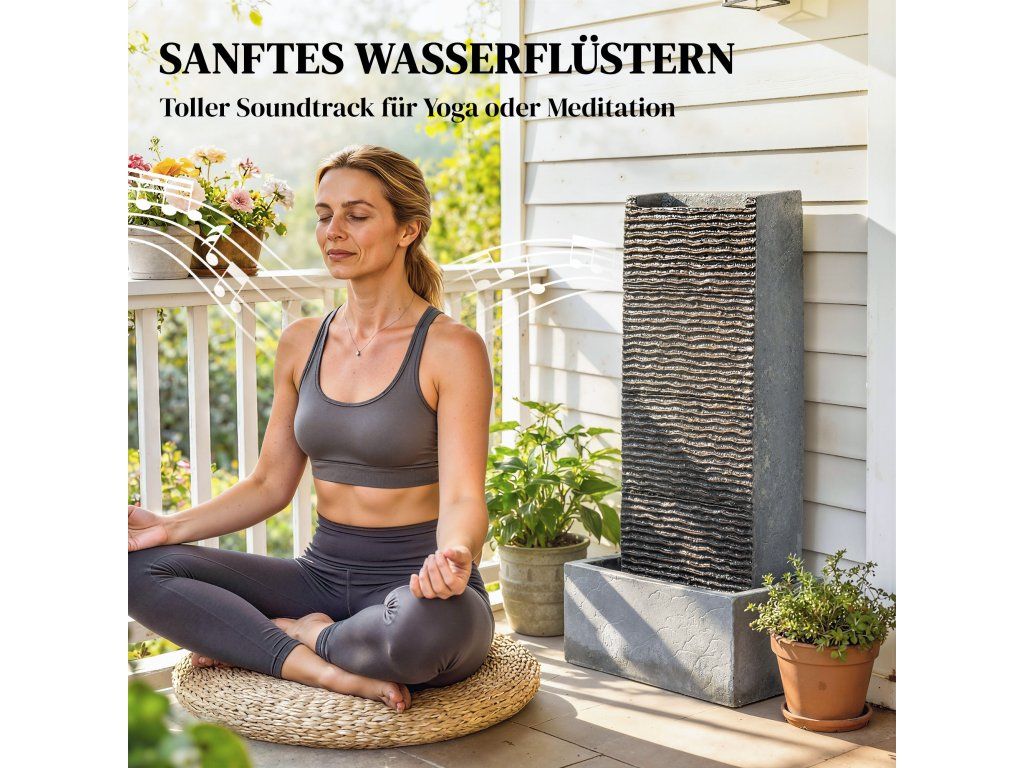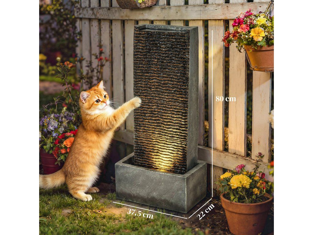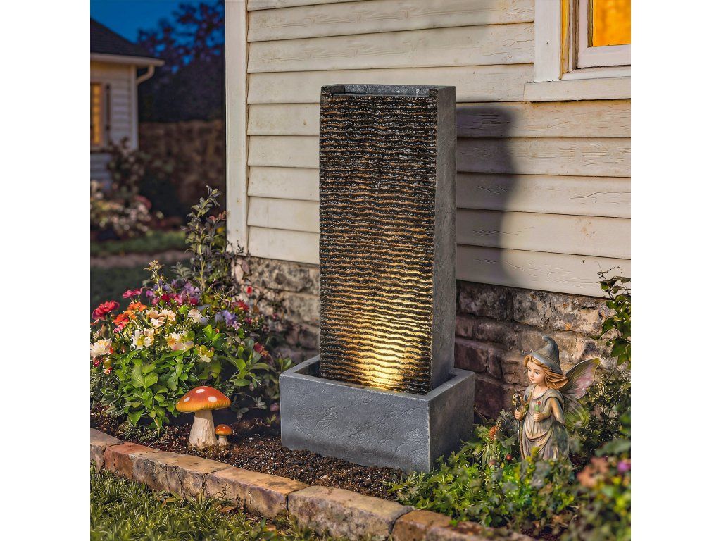 Moderní vodní stěna: Jemný proud vody stéká po 80 cm texturované stěně a vytváří moderní akcent, který dodá vaší zahradě umělecký a stylový ústřední bod.