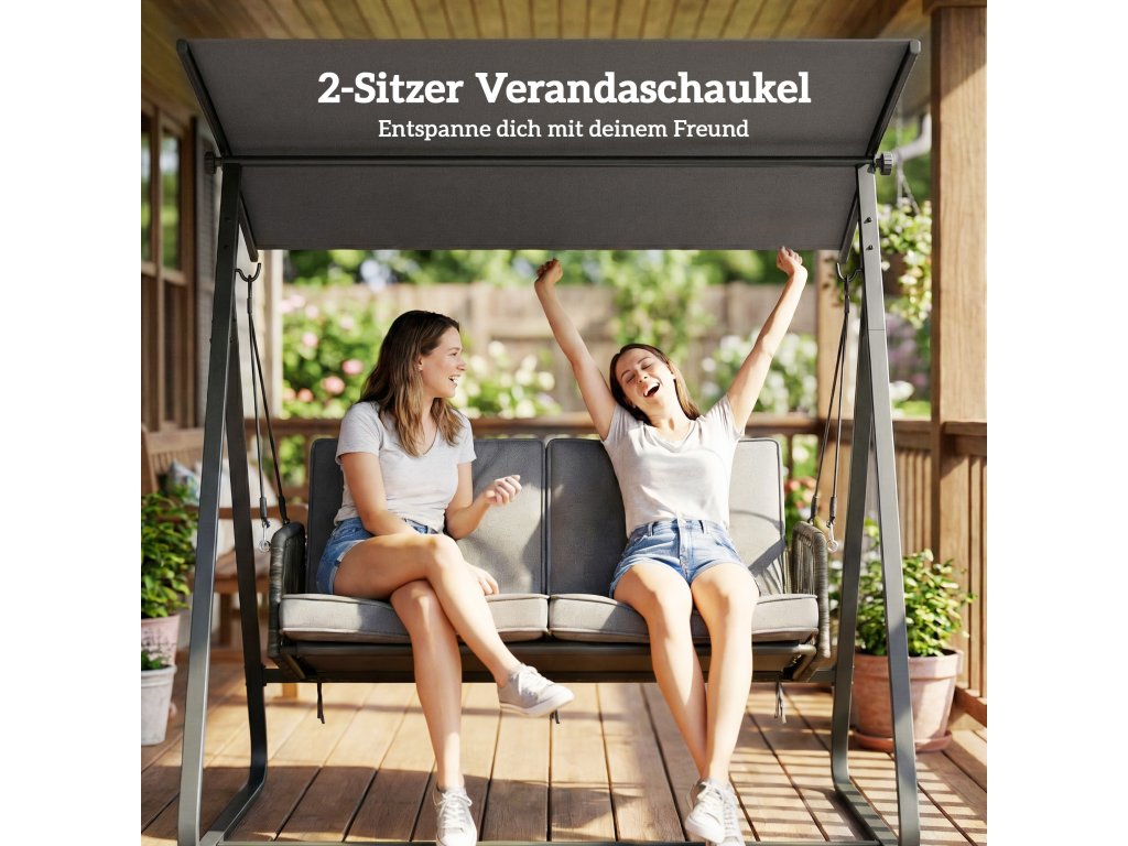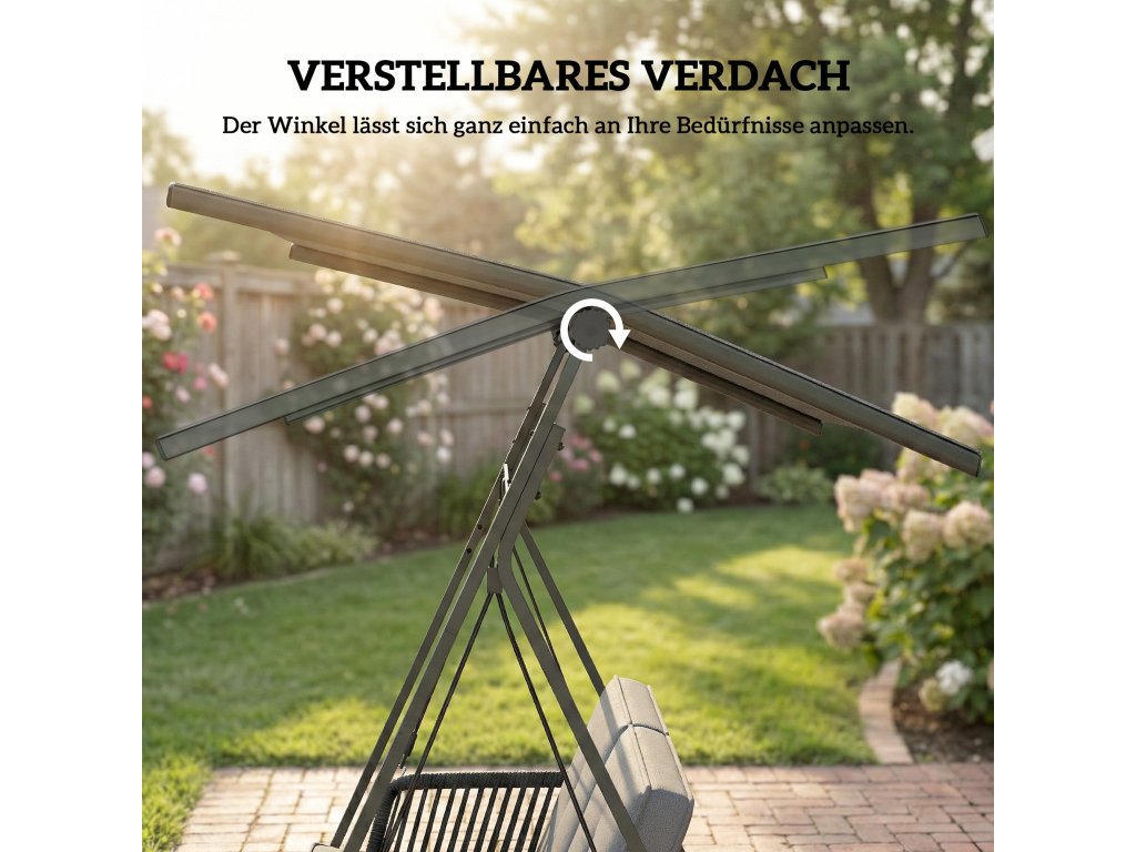 ✔ Velká, nastavitelná stříška této verandové houpačky poskytuje dostatek stínu před sluncem