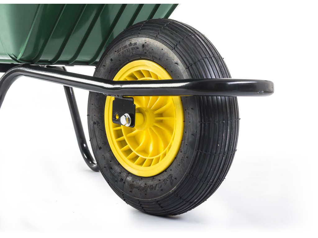 Pro zahradní kolečka se používají dva typy kol - nafukovací a s plnou pneumatikou. Kolečka G21 mají nafukovací kolo s gumovou pneumatikou, které vám významně ulehčí práci s převážením nákladu. Široké nafukovací kolo ujede bez problémů i v nerovném terénu, snižuje otřesy do rukou při jízdě po hrubém povrchu a neboří se do měkké země. Prostě ideální kombinace pro využití na zahradě a kolem domu.