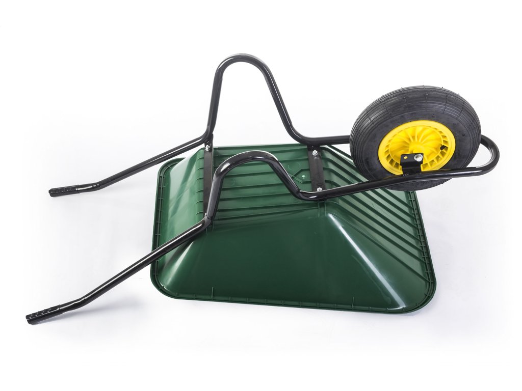 Robustní ocelová konstrukce je opatřena práškovým nástřikem. Přední rám vám umožňuje snadné vyklápění nákladu bez toho, abyste museli zvedat celou jeho hmotnost. Se zahradním kolečkem G21 vás nečekají žádné galeje, jen příjemná práce bez dřiny.