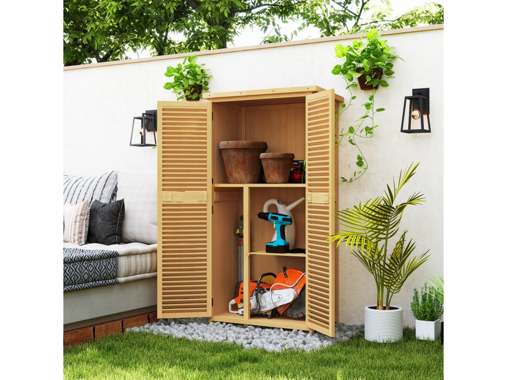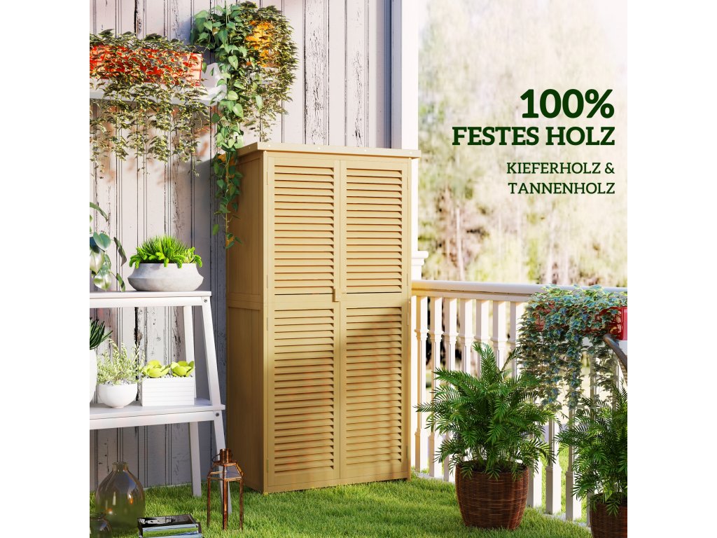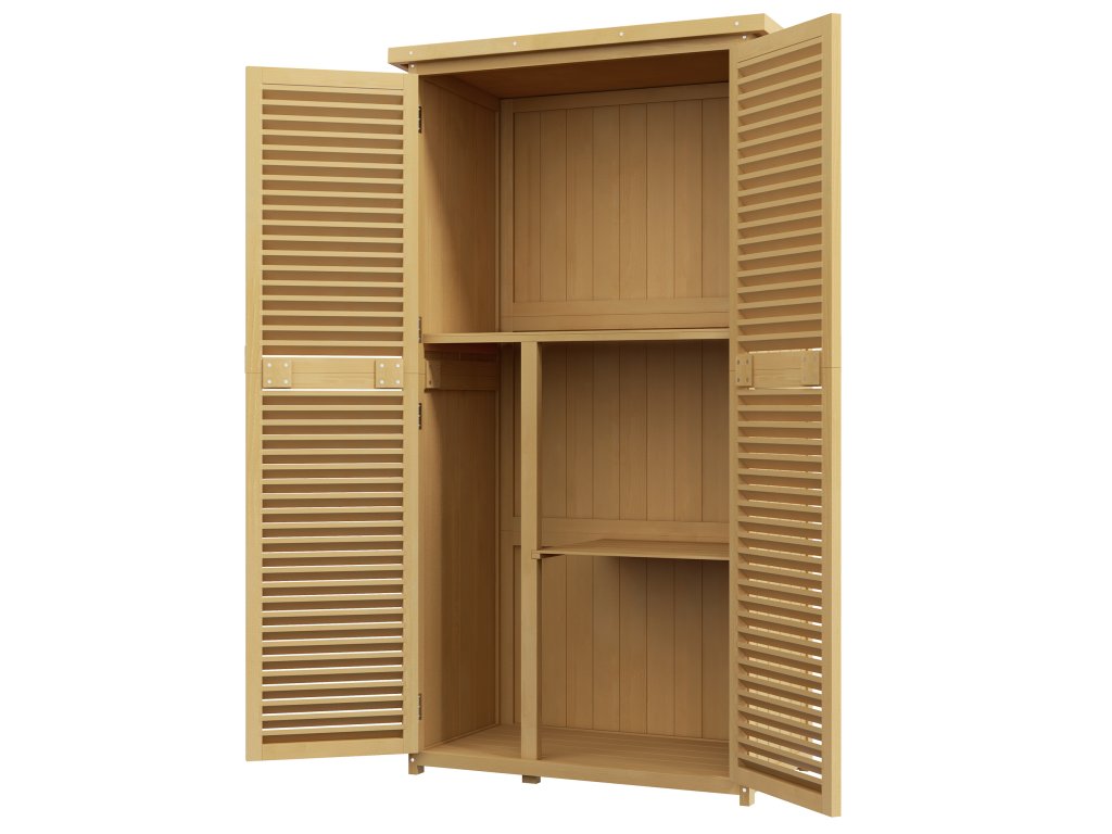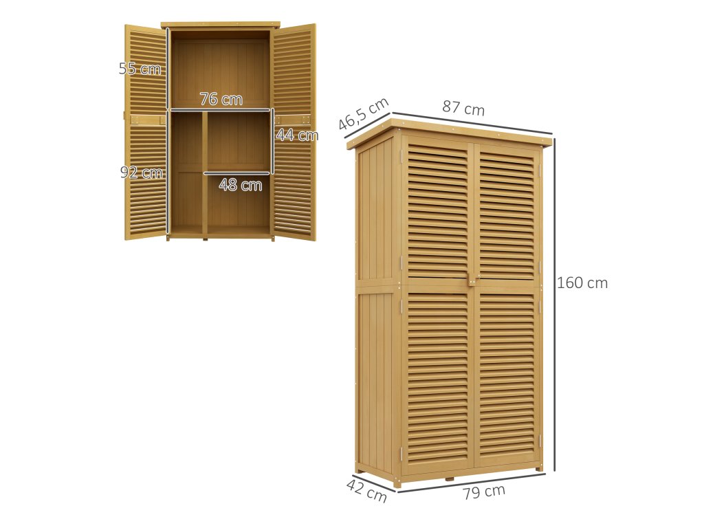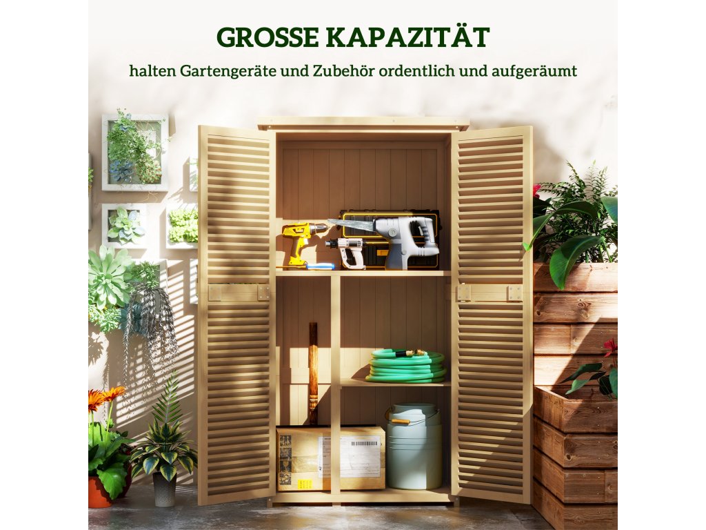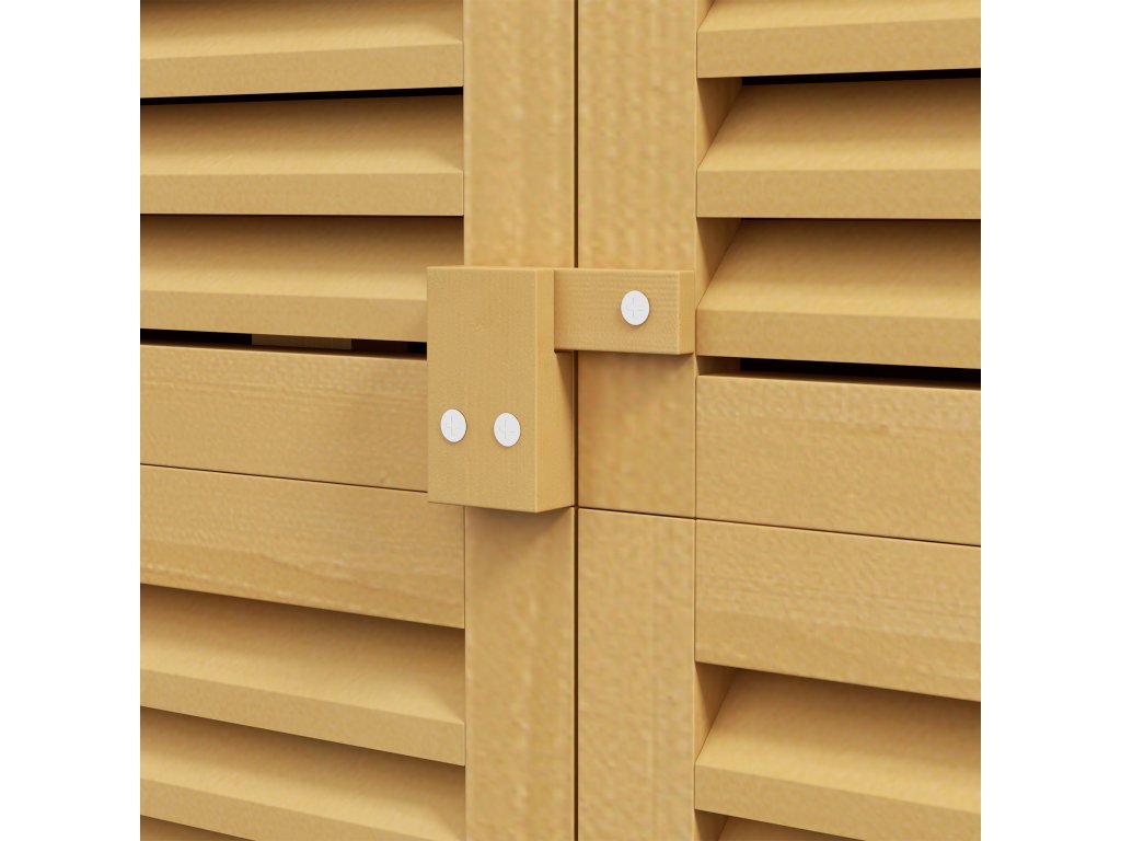 - Elegantní design: Tento stylový přístřešek na nářadí zaujme elegantními žaluziovými dveřmi a atraktivním designem, který harmonicky zapadne do každé zahrady.
