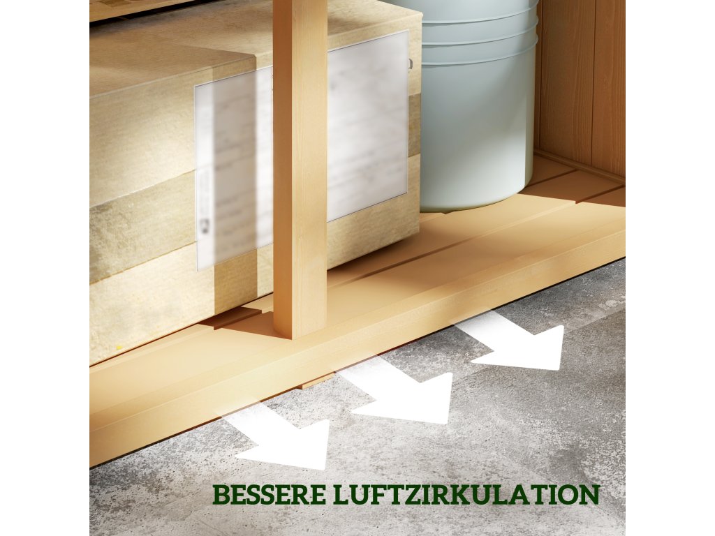 - ✔ Montáž na 4 robustní nožičky zahradní skříně pro optimální ochranu před zemní vlhkostí