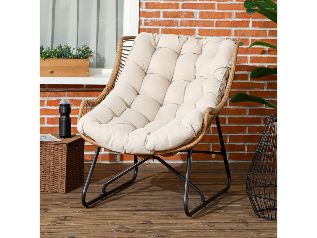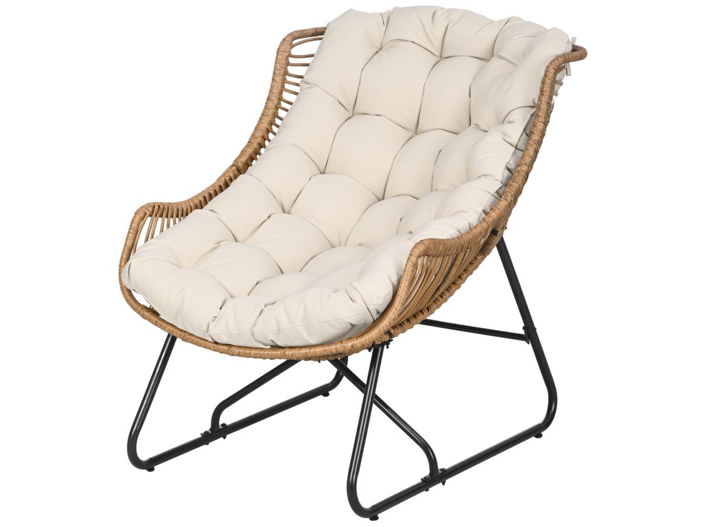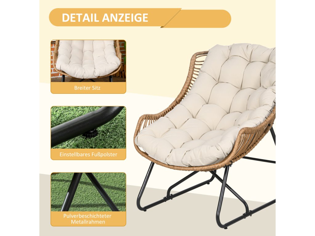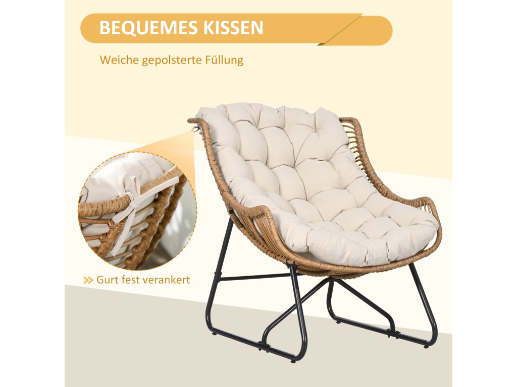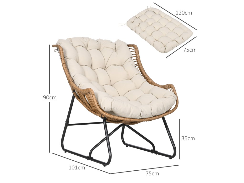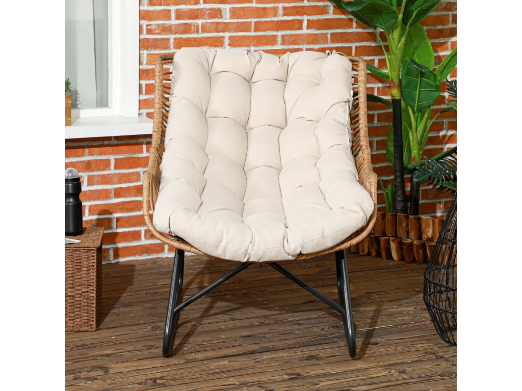 Zahradní křeslo Outsunny Garden Lounge, ratanový vzhled, venkovní křeslo, s polštářem, kovový rám, 75x101x90 cm, přírodní/khaki/černá