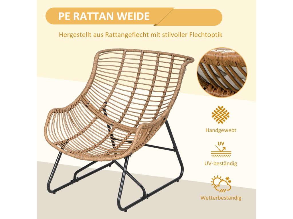 Užijte si stylovou relaxaci venku s ratanovým křeslem od Outsunny. Jeho robustní ocelový rám s práškovým nástřikem a vysoce kvalitní syntetický ratan ho činí mimořádně odolným a odolným vůči povětrnostním vlivům. Měkce polstrovaný sedák poskytuje extra pohodlí, zatímco kovové nohy s nastavitelnými nožičkami nabízejí optimální stabilitu. S tímto dekorativním a funkčním venkovním zahradním křeslem se každý okamžik na zahradě stane čistým a bezstarostným relaxačním zážitkem! ... Popis: