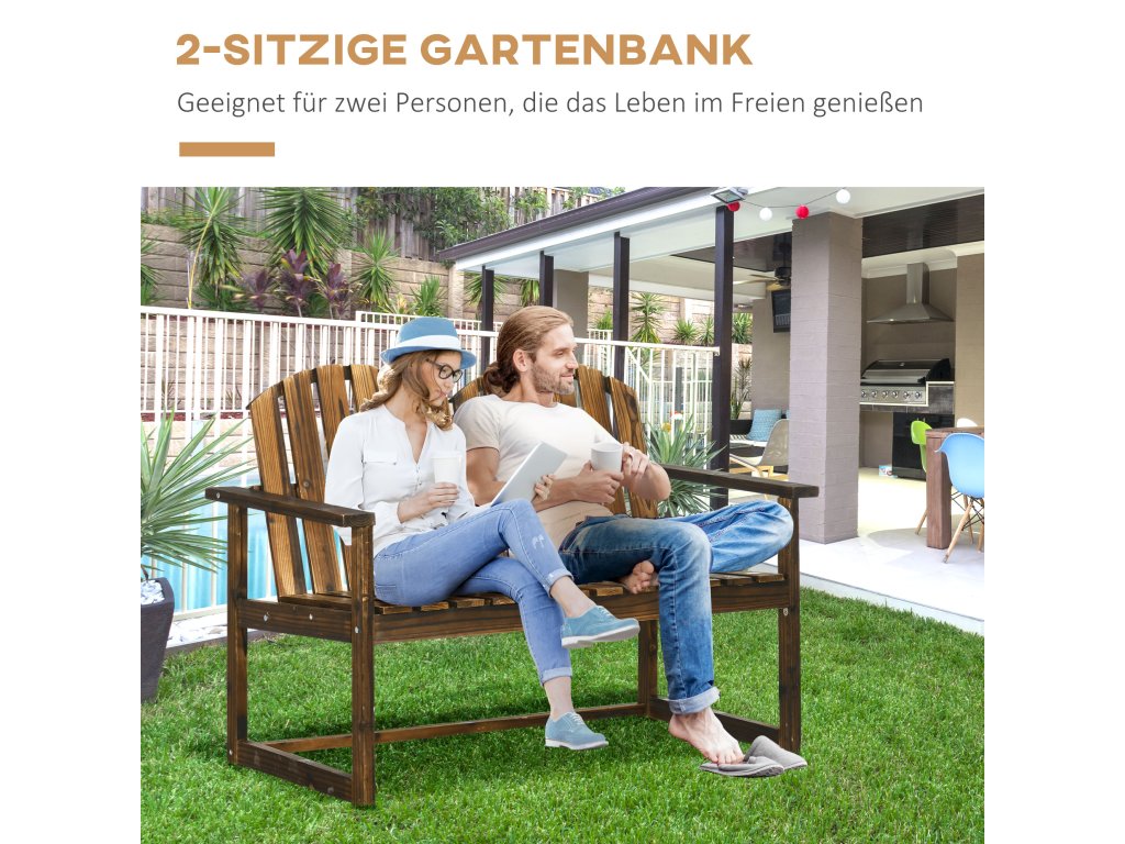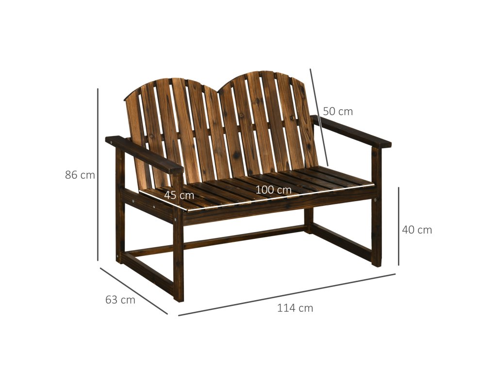 Doplňte svou terasu nebo zahradu touto zahradní lavičkou Outsunny. Tato lavička je vyrobena z masivního jedlového dřeva, je robustní a má karbonizovanou povrchovou úpravu pro větší odolnost ve venkovním prostředí. Dvoumístná lavice nabízí dostatek prostoru pro odpočinek ve dvou. Opěradlo a sedák jsou opatřeny lamelami, které zabraňují hromadění vody. Dodejte svému venkovnímu prostoru krásný rustikální nádech, na který se nezapomíná!