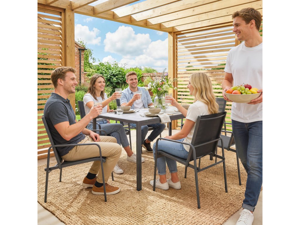 ✔ Sedmidílná sada zahradního nábytku s obdélníkovým stolem a šesti židlemi pro stolování a setkání