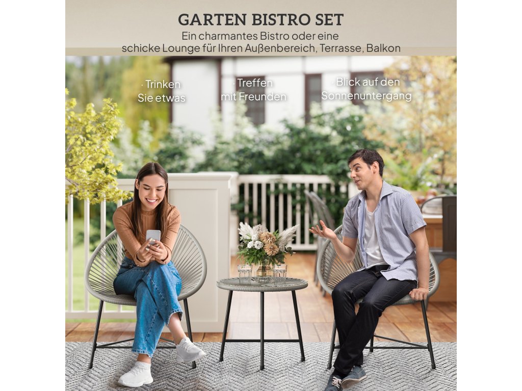 ✔ Třídílná sada balkonového nábytku: Zahradní stůl a dvě židle ve stejném stylu