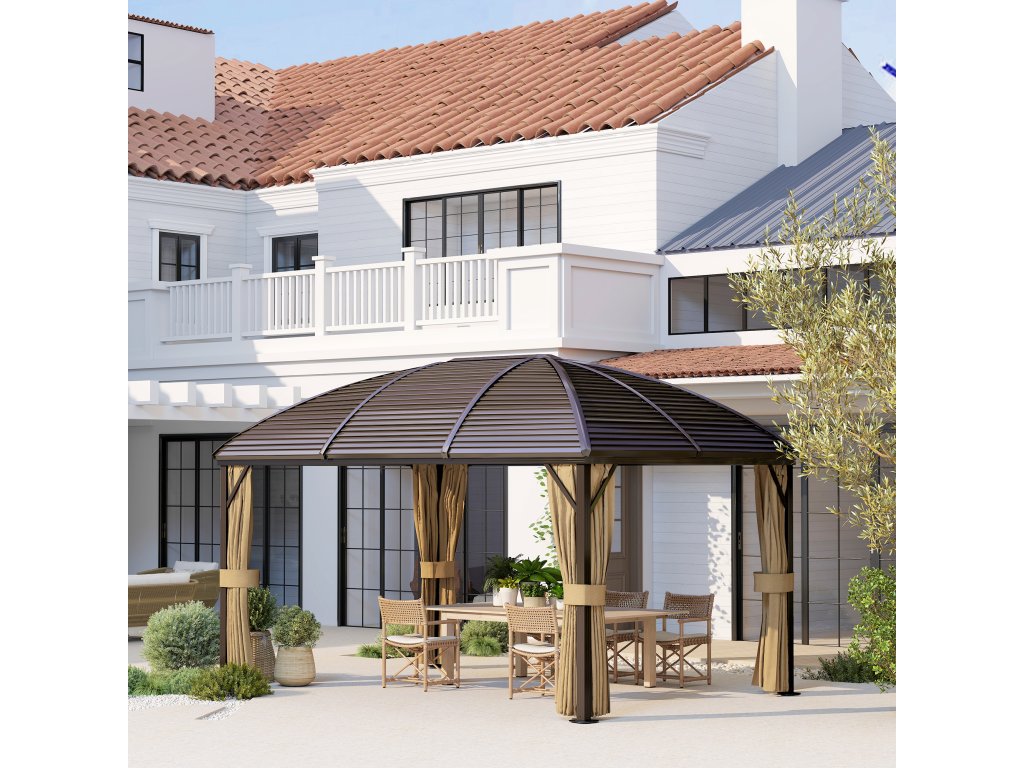 Stabilní rám: Nerezový, práškově lakovaný hliníkový altán a ocelová klenutá střecha jsou stabilní a odolné a chrání vás před sluncem i deštěm.
