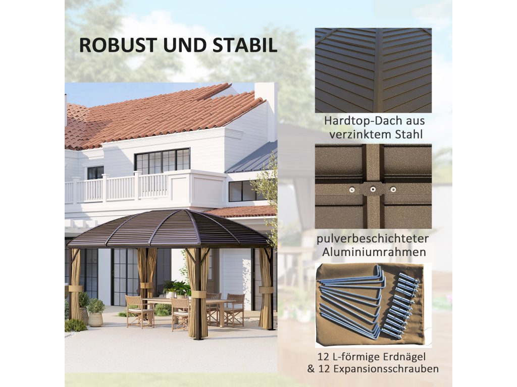 ✔ Nerezový hliníkový altán s robustní ocelovou střechou pro dlouhou životnost bez koroze a skvrn