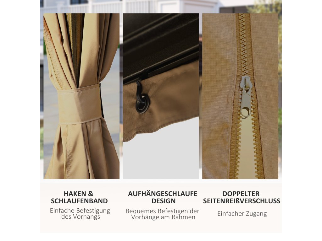 Zahradní pavilon Outsunny, párty stan, stan, 4 x dvojité boční panely, vodotěsný, 2 háky na lucernu, cca 4 x 3 x 2,8 m, hnědý