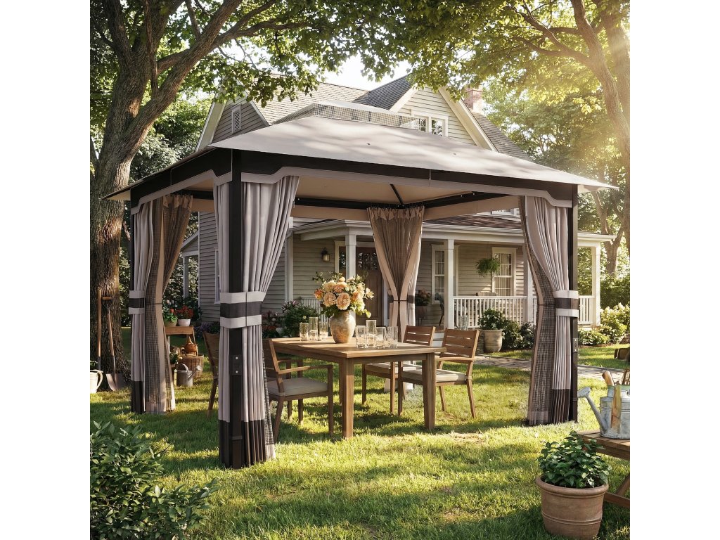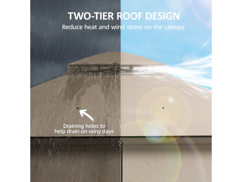 ✔ Dvoustupňová polyesterová střecha s pletivem pro větrání a ochranu před nežádoucími hosty, ideální pro váš zahradní altán