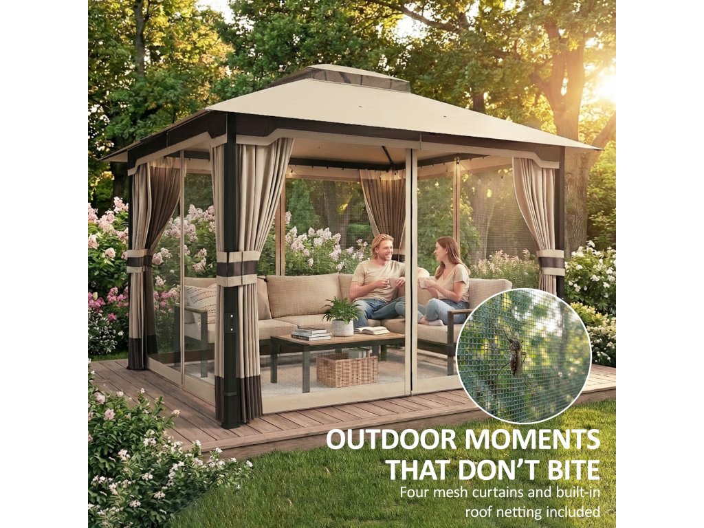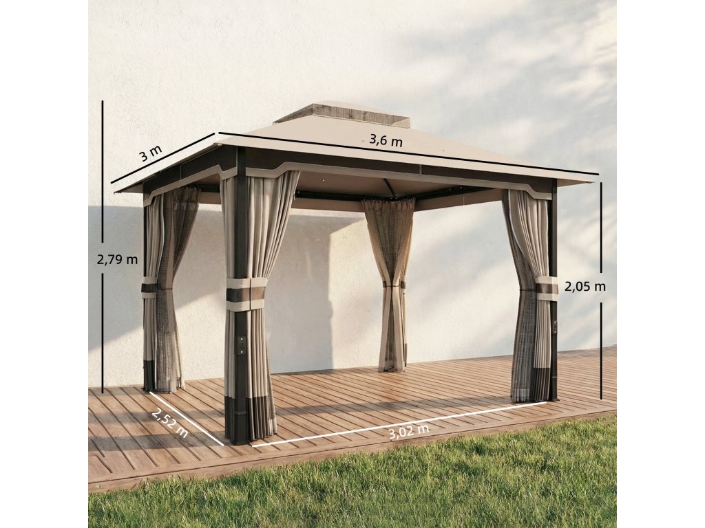 Zahradní pavilon Outsunny 3,6x3 m, vodoodpudivý, robustní, zimní, s dvojitou střechou, moskytiérou, bočními panely, drenážními otvory