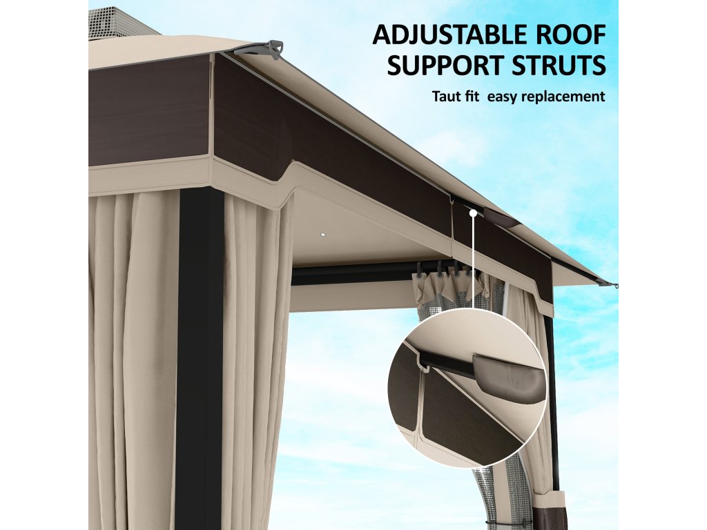 ✔ Dvojité nastavitelné podpěry střechy pomáhají udržovat střechu napnutou a usnadňují instalaci náhradních krytů pro tento altán