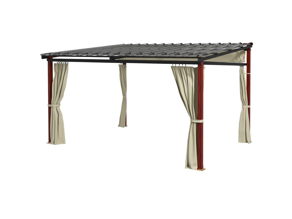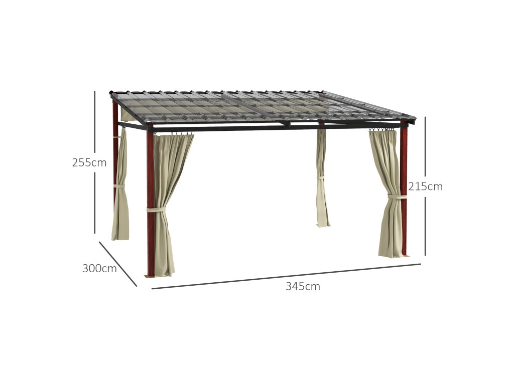 Rozměry: 345D x 300Š x 215-255V cm. Vzdálenost mezi sloupy: 318D x 264Š cm. Nevystavujte extrémním povětrnostním podmínkám.