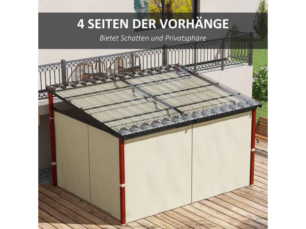 Venkovní markýza Outsunny je perfektním doplňkem vaší terasy nebo zahrady! Umožní vám snadno vytvořit pohodlnou relaxační zónu, bezpečně chráněnou před deštěm nebo přímým slunečním zářením. Tato konstrukce nabízí nejen pohodlí a všestrannost, ale je také nenáročná na údržbu a odolná, což snižuje náklady. Ať už je pergola na slunci nebo ve stínu, přizpůsobí se jakémukoli klimatu a zajistí nezapomenutelný zážitek.