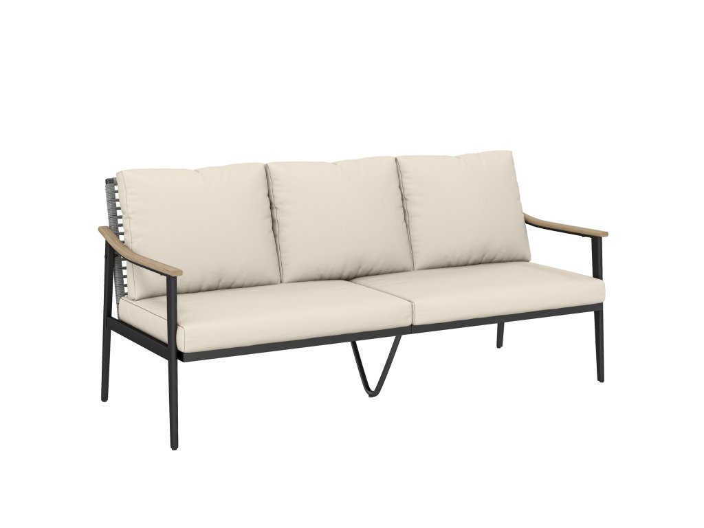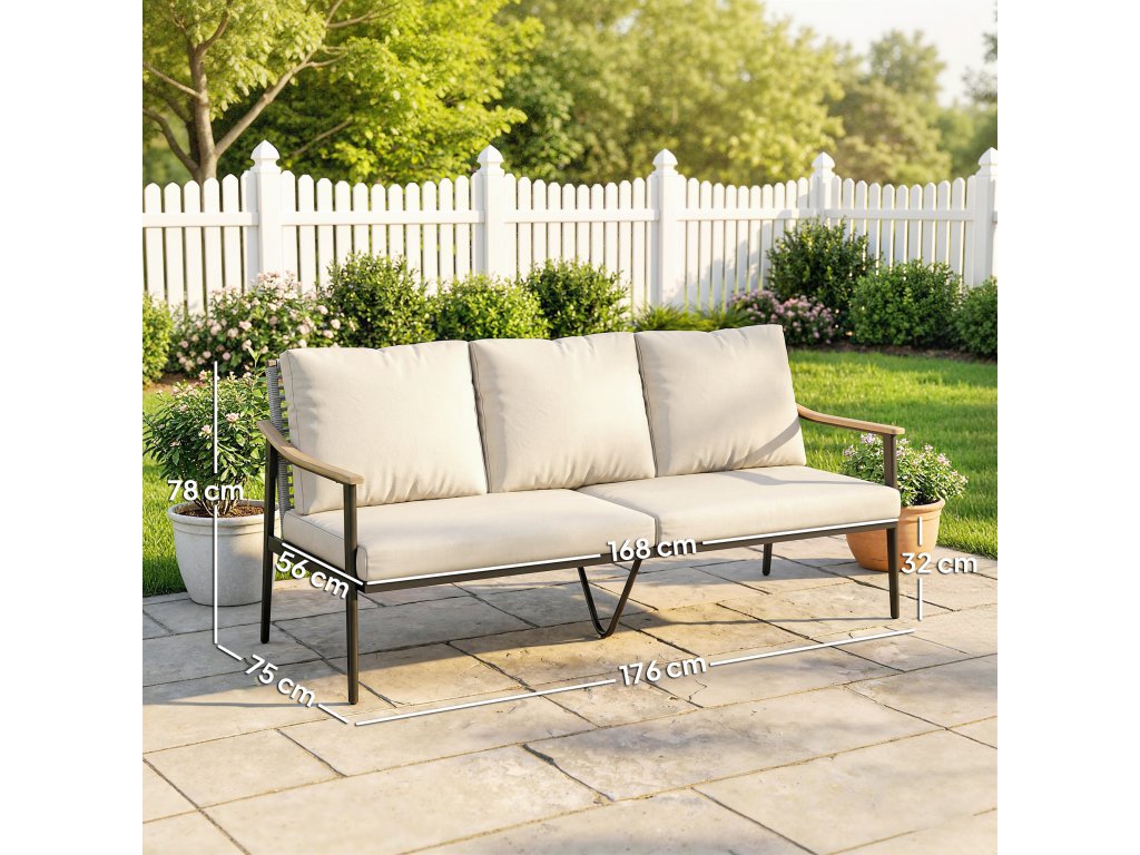 ✔ Unikátní ocelové područky s imitací dřeva dodávají této zahradní pohovce přirozený vzhled