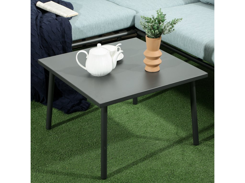 Stylové odkládací stolky: Sada na terasu obsahuje čtvercový konferenční stolek s hliníkovou deskou, který vytváří krásný a praktický ústřední prvek posezení. Deska stolu se snadno čistí vlhkým hadříkem.