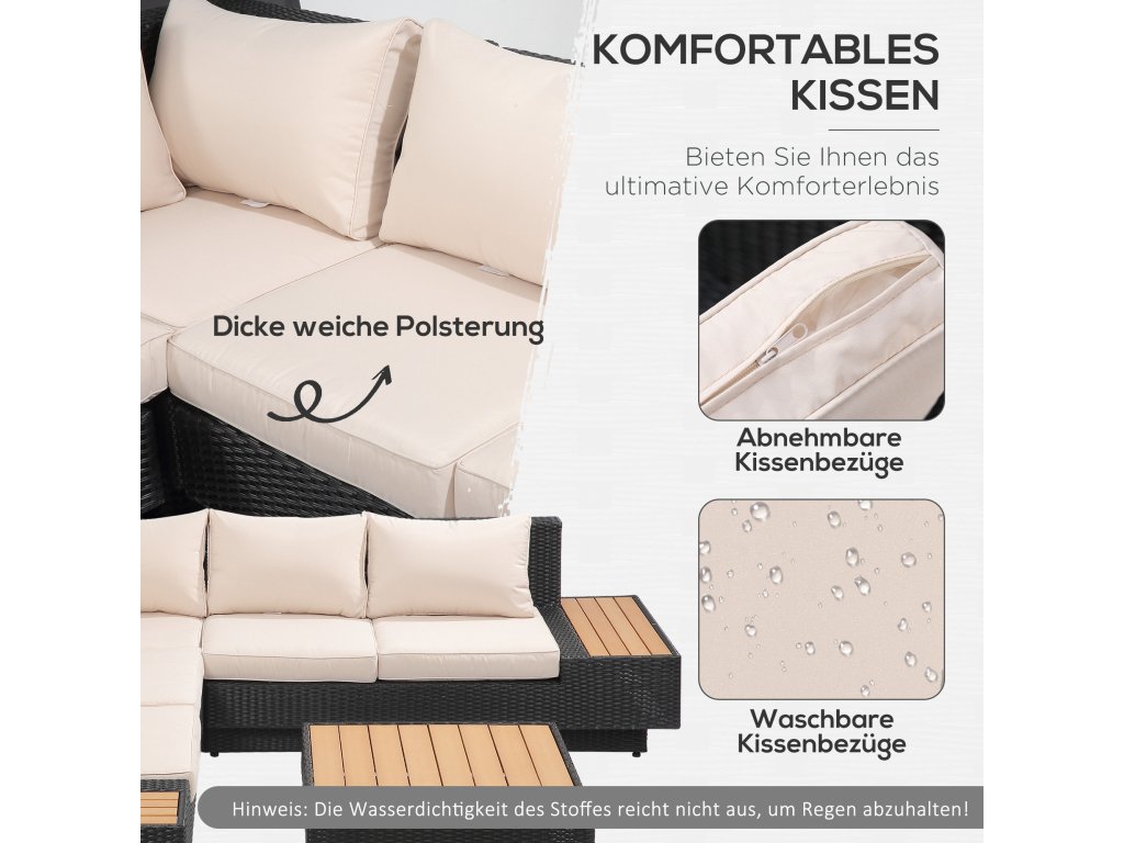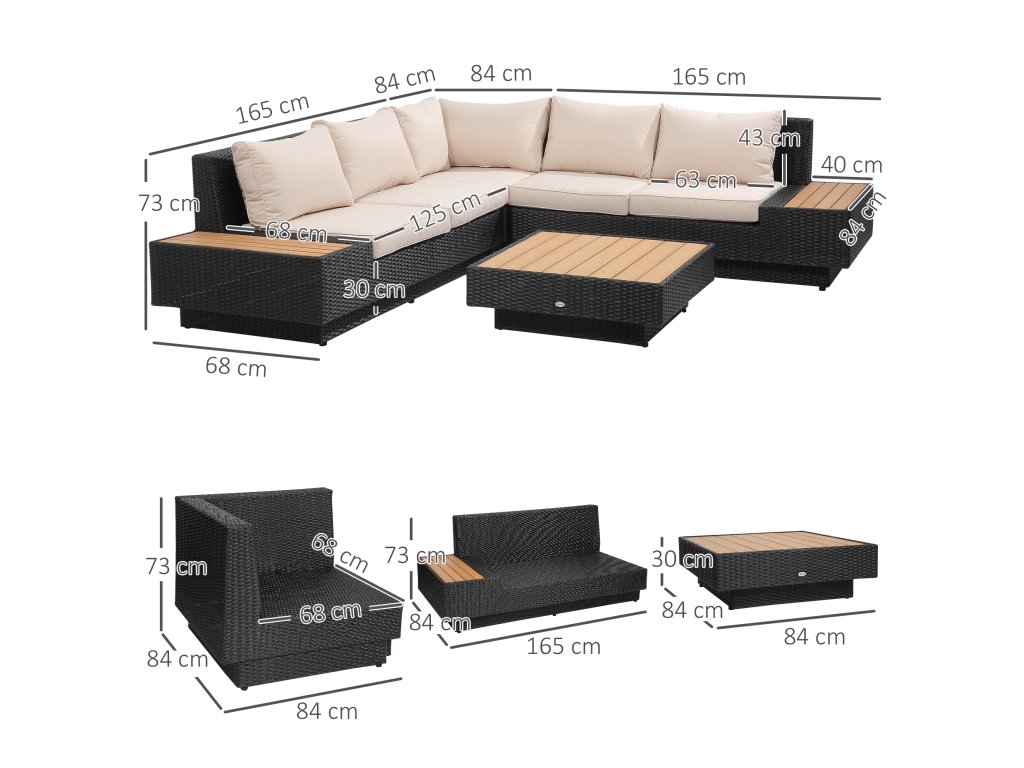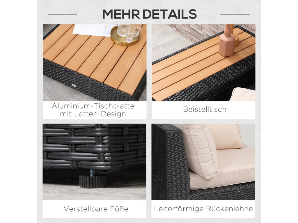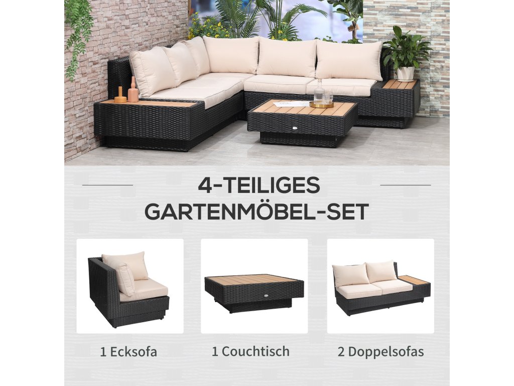 Užijte si léto naplno s touto sedací soupravou od Outsunny! Čtyřdílná sada je vyrobena z moderního kvalitního plastového ratanu, jehož výplet odolný vůči povětrnostním vlivům je ručně vyrobený a zaujme svou robustností a necitlivostí vůči vlhkosti a UV záření. Nerezový ocelový rám zajišťuje vysokou stabilitu a široké, velkorysé čalounění poskytuje jedinečné pohodlné sezení. Takhle může začít léto!