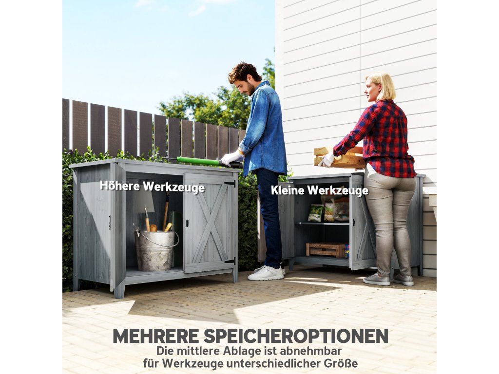- Praktické provedení s plochou horní částí: Plochá horní část skříně na nářadí je ideální pro sázení květin nebo třídění čerstvě sklizeného ovoce a zeleniny