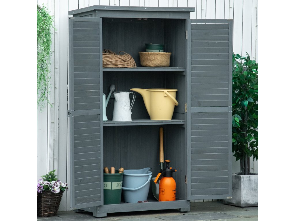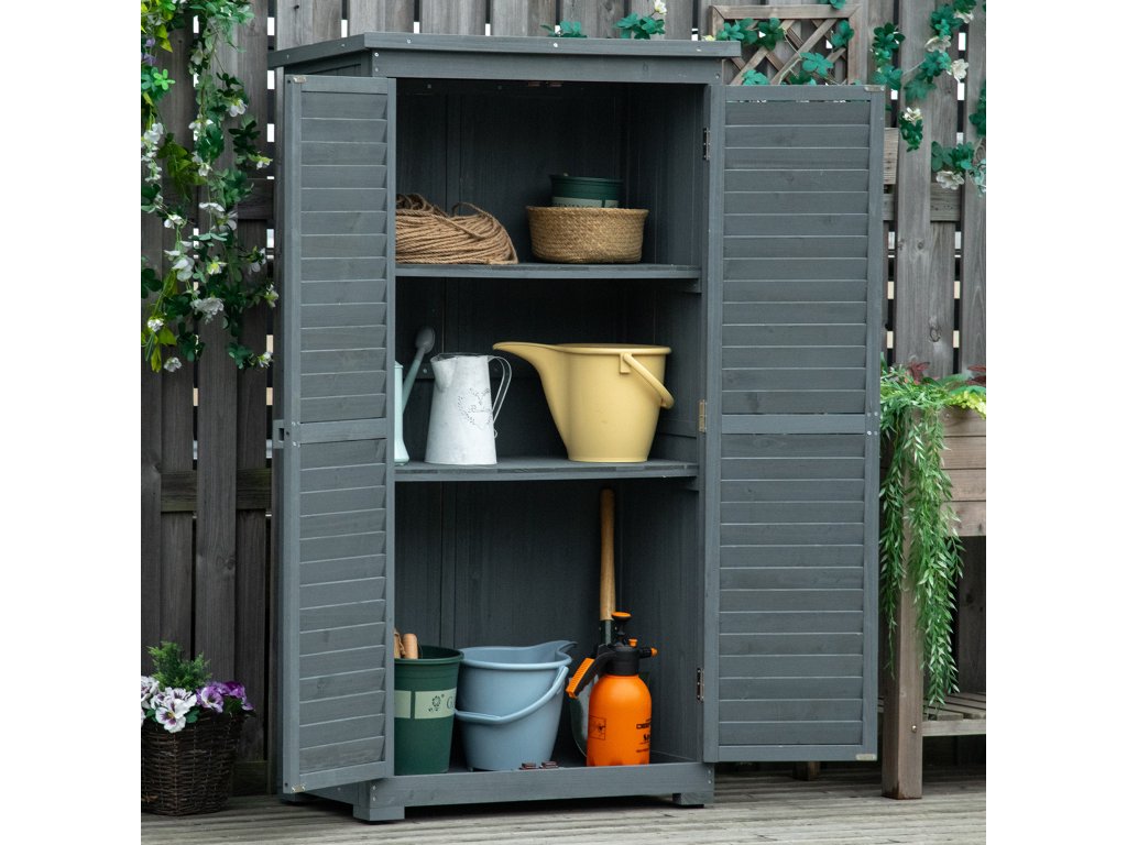 Pokud se vám zahradní nářadí a vybavení povaluje někde jinde a zabírá místo, je čas mu dopřát vlastní prostor – v našem zahradním domku Outsunny! Tento zahradní domek je elegantním řešením pro nářadí a příslušenství. Tři police za dvěma velkými dveřmi s dřevěnými úchyty udržují vše diskrétně uložené a zároveň snadno přístupné. Asfaltová plsť na pultové střeše zajišťuje, že uvnitř zůstane vše suché. Laťková vrata zajišťují, že váš domek na nářadí bude vždy dobře větraný.