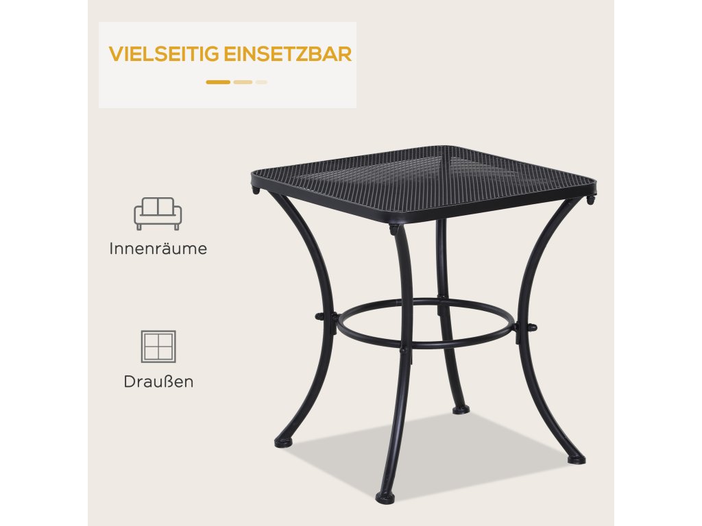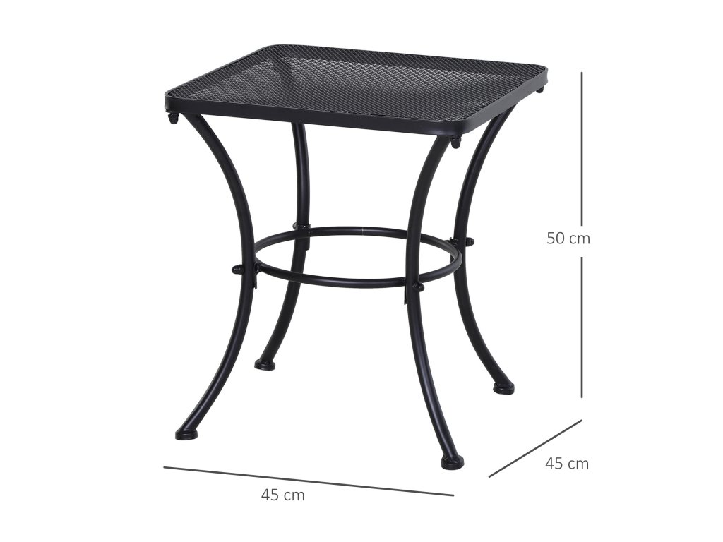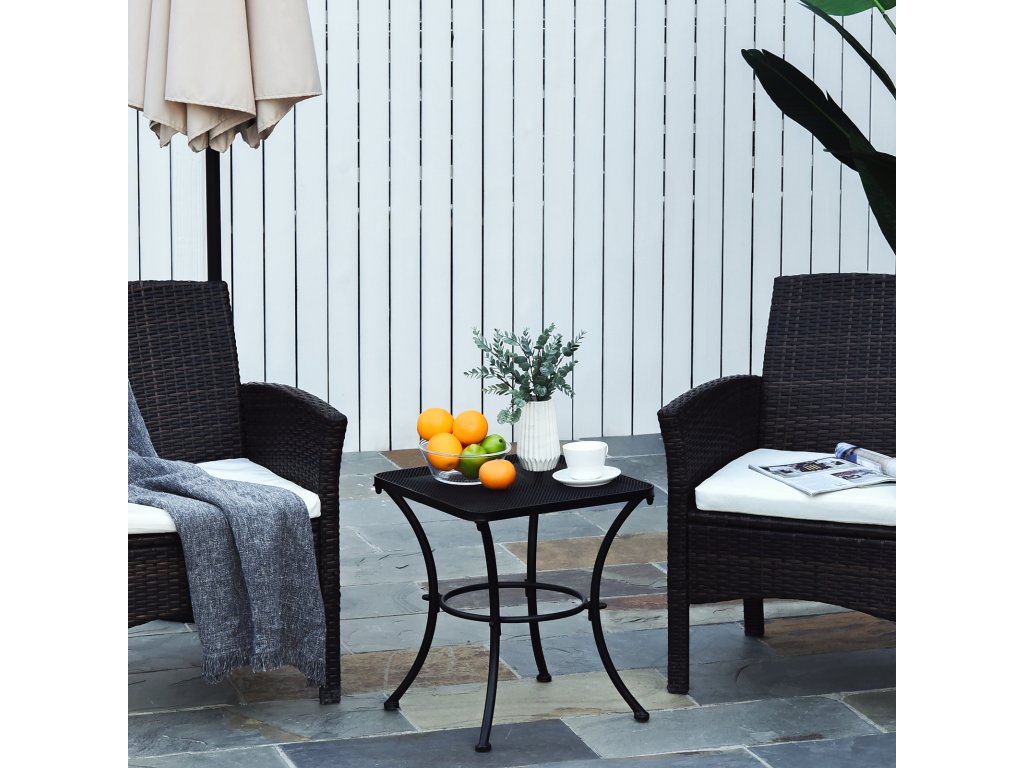 Zahradní stolek Outsunny, odkládací stolek, zahradní stolek, konferenční stolek, kov, černý, terasa, 45 x 45 x 50 cm