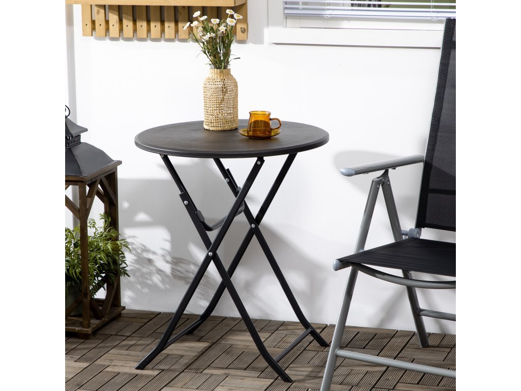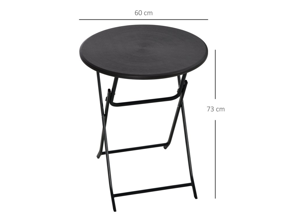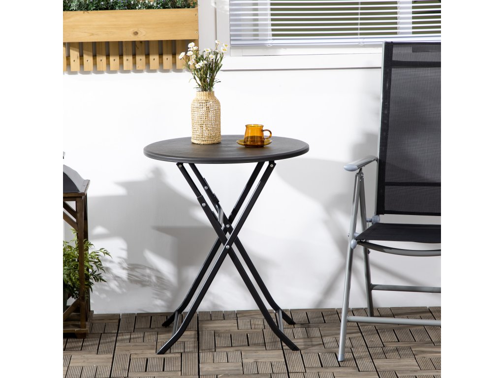 Zahradní stůl Outsunny, kulatý, skládací, pro 2 osoby, vzhled dřeva, ocel+plast, tmavě šedý, 60 x 60 x 73 cm