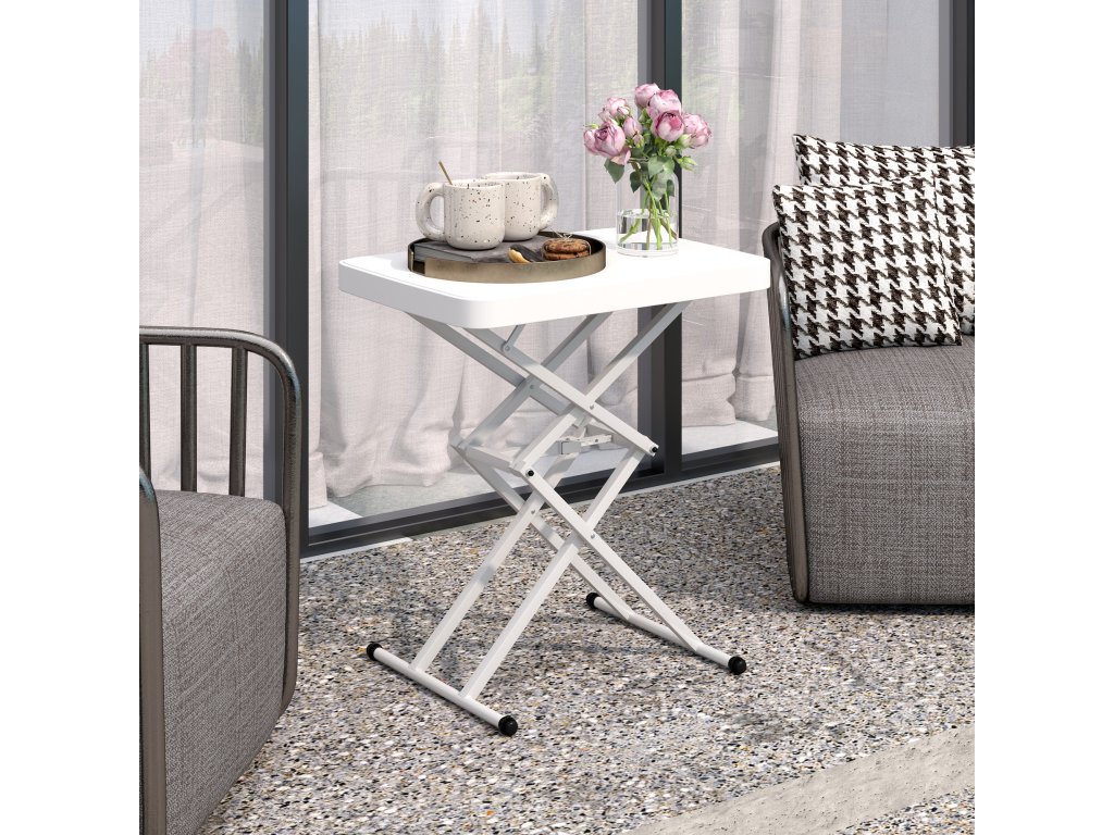 - Nastavitelná výška: Díky pětistupňovému nastavení výšky lze tento balkonový stolek snadno přizpůsobit různým prostředím a osobním preferencím