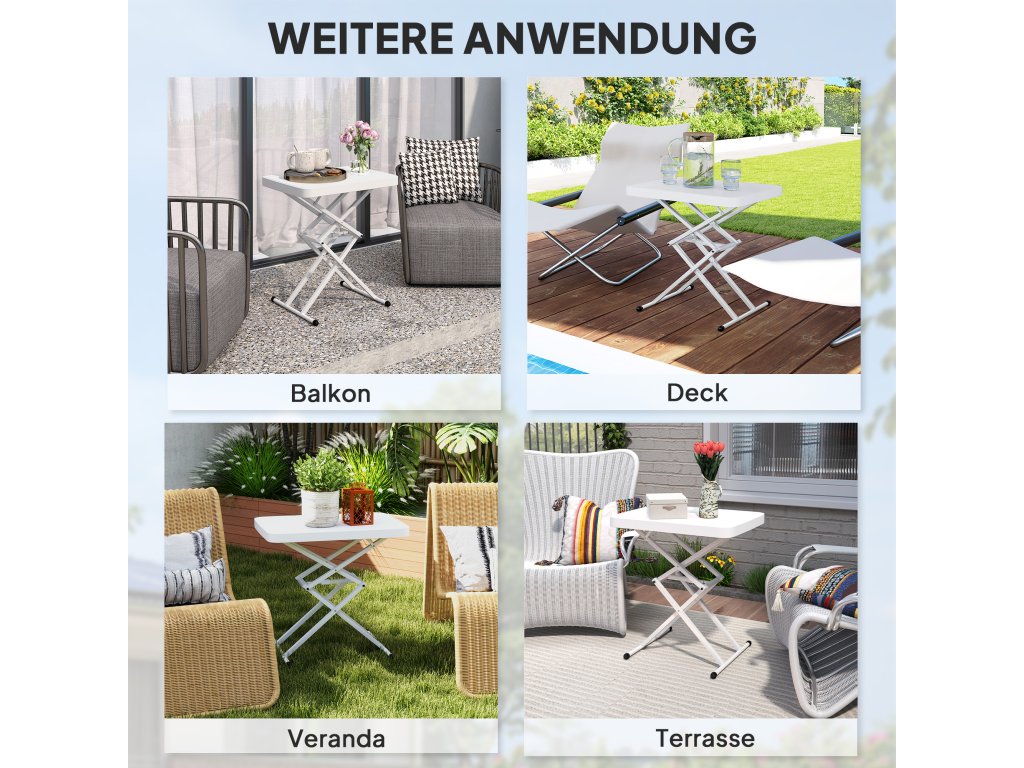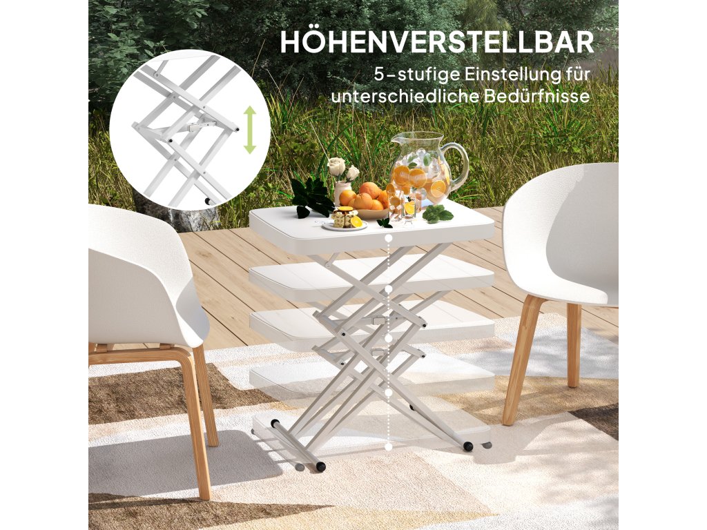 - ✔ Pětistupňové nastavení výšky malého zahradního stolku se přizpůsobí různým potřebám uživatelů